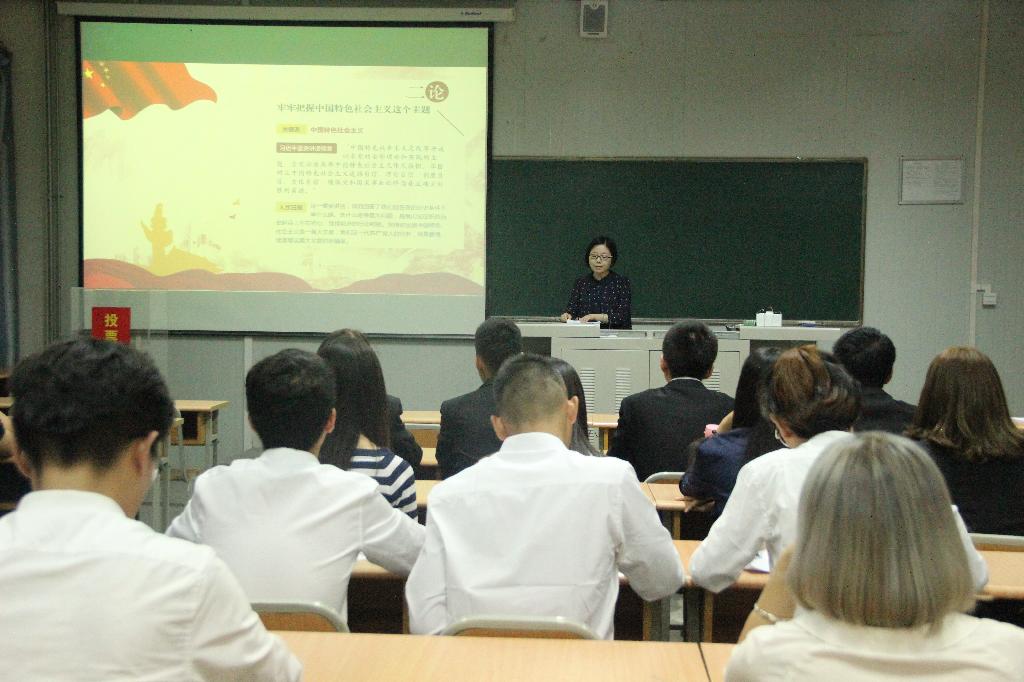 会议分为两个阶段,第一阶段专题学习会由团总支书记沈菲主讲。关于习近平总书记7·26重要讲话、8·15回信的相关内容,Beat365唯一官方网站团总支在暑期通过爱中文微信平台进行了专题推送,组织学生进行了线上学习;本次通过专题学习会线下重温的方式,再度带领学生深入学习相关内容。沈菲从八个学习要点切入,阐述了习近平总书记7·26重要讲话精神;通过阅读回信,关键词解读的方式带领大家学习了习近平总书记8·15回信和9·23回信的重要内容。沈菲希望全体学生干部深入学习领会讲话和回信精神,培养创新意识与团队精神,切实增强政治自觉,在广大学生当中发挥模范带头作用。