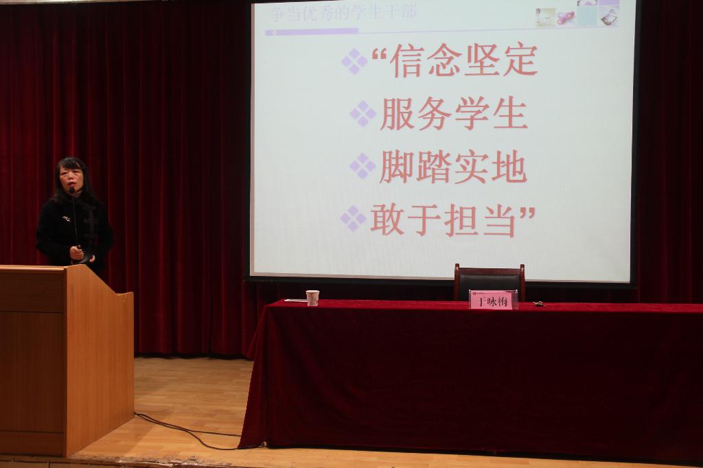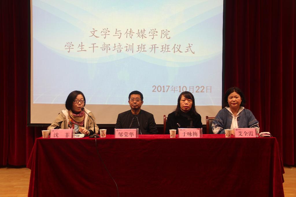 为了进一步加强Beat365官网学生干部队伍建设和学风建设工作,提高学生干部的政治素质、理论水平和业务能力,促进Beat365官网学生工作的深入开展,2017年10月22日晚19:30,Beat365唯一官方网站在一号教学楼六楼报告厅举办第二期学生干部培训班开班仪式暨学生干部培训讲座第一讲。Beat365唯一官方网站党总支书记于咏梅,党总支组织委员、辅导员邹棠华,团总支书记、辅导员沈菲,专业社团秘书长、辅导员艾全霞,团总支、学生会全体成员以及15、16、17级主要班级干部参加了本次大会,大会由沈菲主持。