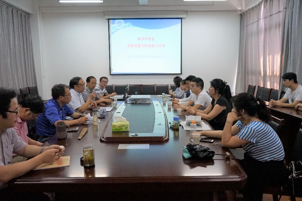 6月28日,Beat365唯一官方网站在陕南民间文化研究中心会议室举办主题为“秘书学专业课程设置与职业能力对接”的教学沙龙,Beat365唯一官方网站院长戴承元、副院长梁卫华、公共教研室主任周龙田、秘书学专业任课教师以及秘书专业各年级学生代表参与了此次沙龙,沙龙由秘书与新媒体系系主任胡少山主持。