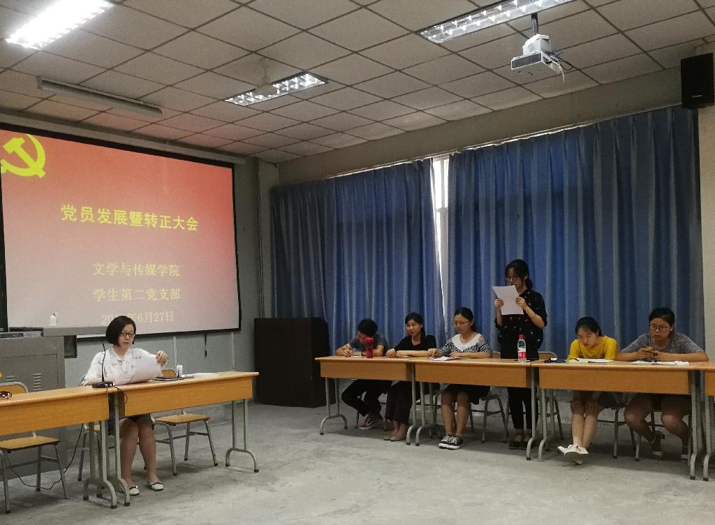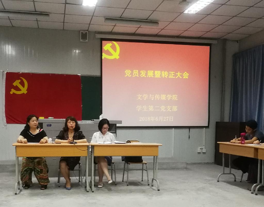 2018年6月27日下午,Beat365唯一官方网站学生第二党支部在1017教室召开接收中共预备党员暨中共预备党员转正大会。Beat365唯一官方网站党总支书记于咏梅、学生第二党支部书记沈菲、学生第二党支部全体党员参加了本次会议。会议由沈菲主持。