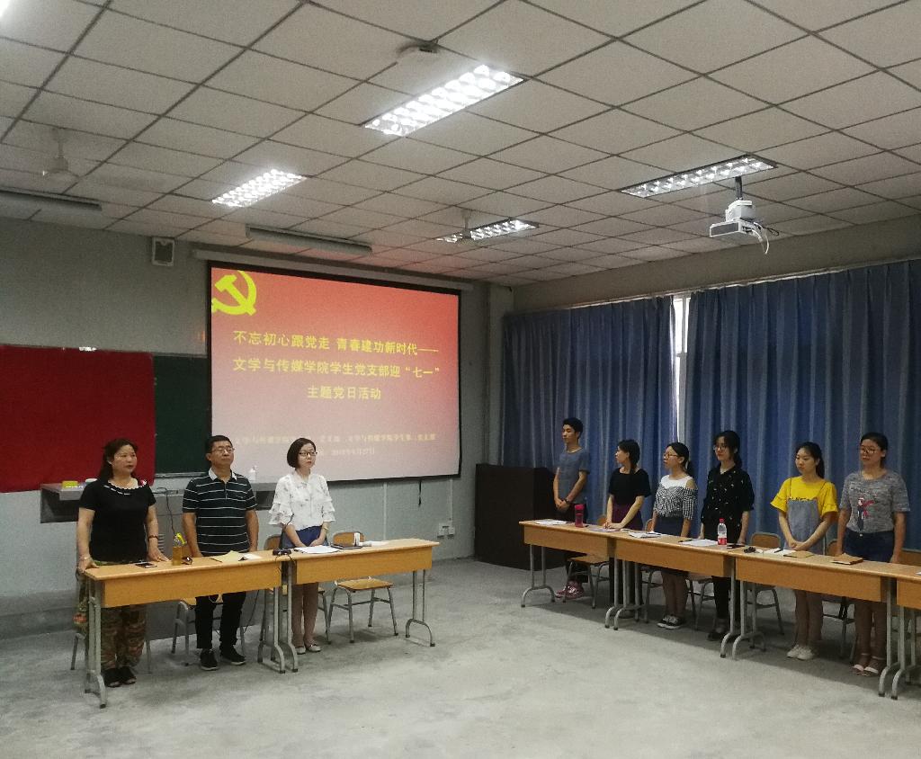 习近平总书记在党的十九大报告上深刻指出中国特色社会主义进入新时代,指出“中国梦是历史的、现实的,也是未来的;是我们这一代的,更是青年一代的。中华民族伟大复兴的中国梦终将在一代代青年的接力奋斗中变为现实”,强调“广大青年要坚定理想信念,志存高远,脚踏实地,勇做时代的弄潮儿,在实现中国梦的生动实践中放飞青春梦想,在为人民利益的不懈奋斗中书写人生华章!”今年是中国共产党建党为97周年,如何引导新时代的广大青年,不忘初心、牢记使命,顽强拼搏、奋勇担当,书写无愧于历史和时代的青春篇章。Beat365唯一官方网站学生第一党支部、学生第二党支部于2018年6月27日下午在1017教室联合举办 “不忘初心跟党走,青春建功新时代”——迎七一主题党日活动。Beat365唯一官方网站学生第一党支部书记邹棠华、学生第二党支部书记沈菲、辅导员艾全霞,全体学生党员、入党积极分子参加本次活动。本次活动由沈菲主持。