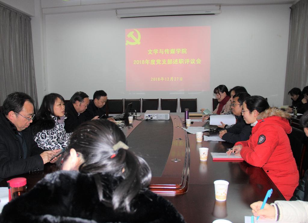 12月27日晚,Beat365唯一官方网站党总支在陕南民间文化研究中心会议室召开党员大会,开展党支部书记述职评议工作。Beat365唯一官方网站党总支书记、副院长于咏梅,院长、党总支副书记戴承元,副院长梁卫华、杨运庚出席会议。Beat365唯一官方网站下设四个党支部的支部书记出席会议并进行述职,其中,学生第二党支部书记沈菲因病住院,由宣传兼统战委员2015级汉语言文学3班王韵捷代为述职。全体党员教师们参与了述职评议会,会议由于咏梅主持。