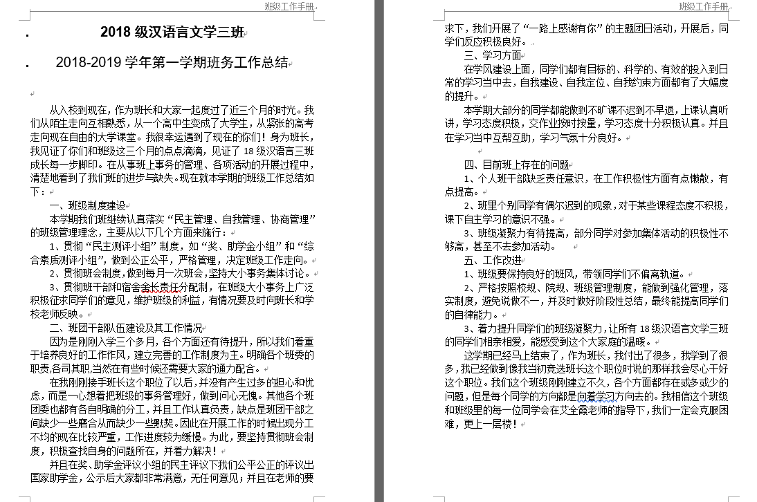 Beat365唯一官方网站一直以来高度重视班级建设工作,从2016年下半年开始,结合实际制定了班级工作手册模板,要求每个班级每学期末交一份班级手册,强化班级建设,在提班风改舍风促学风上取得了一定实效。为强化班级建设,连续三年举办学生干部培训班,各班班长团支书全员参加培训,提升班级学生干部的工作能力与整体素质。此外,重视制度建设,开展文明班级(五四红旗团支部)评选活动,各班级纷纷创优争先,完善班级制度,凝聚班级力量,培育班级文化。在文明班级创建过程中,通过一学期一本的班级工作手册,全方位多层次宽领域全面记录班级这一学期的成果与不足,对班级一学期工作进行总结与反思,激励班级下一学期保持优点,改进不足,同时也方便班级资料查找,为大学生活留下宝贵可触碰的记忆。