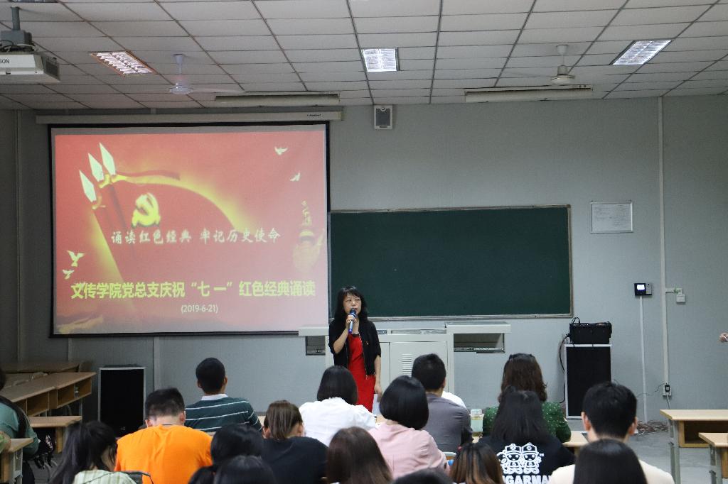 七月,见证给岁月的是一串串永远的火红,澎湃在我们心头的是无休无止的涛声。为庆祝中国共产党建党九十八周年,以诵读红色经典的形式,教育党员不忘初心,牢记使命,砥砺前行跟党走;在诵读红色经典中回望激情燃烧的岁月,缅怀革命先驱光辉的业绩,以红色经典促党性修养。2019年6月21日,Beat365唯一官方网站在江南校区10号教学楼1025教室开展“诵读红色经典,牢记历史使命”庆祝“七一”红色经典诵读主题党日活动。Beat365唯一官方网站党总支委员会、党支部委员会成员,学生第一、第二党支部学生党员,教工第一、第二党支部部分党员,第18期发展对象、第47期积极分子参与了本次诵读活动。本次活动由2017级秘书学一班学生杨彩艺、党卓文主持。