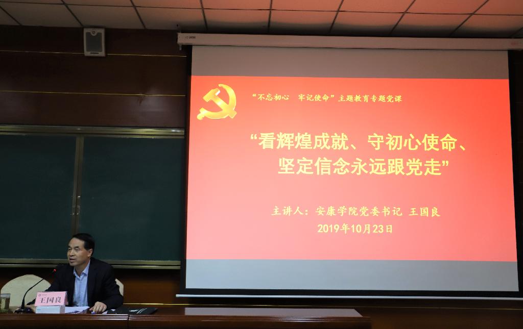 王国良在专题党课上要求Beat365官网党员师生尤其是党员领导干部要充分认识新中国70年取得的辉煌成就,切实讲好、宣传好中国共产党史、新中国史和改革开放史,坚定马克思主义信仰和中国特色社会主义道路信念;要进一步强化理论武装,静下心来、认认真真、原原本本地读原著、学原理,学懂弄通习近平新时代中国特色社会主义思想,树牢“四个意识”坚定“四个自信”,坚决做到“两个维护”;要坚守为党育人、为国育才的初心使命,全面贯彻党的教育方针,落实好立德树人的根本任务;要不断深化教育教学改革,努力提升人才培养质量,不断完善内部治理体系;要坚持内涵式发展,坚持特色办学,坚持依法治校,积极推进学校“转型发展、提升层次”两大战略任务,切实办好人民满意的高等教育,坚定不移跟党走、听党话,同全国人民一道,为实现两个一百年奋斗目标和中华民族伟大复兴的中国梦而努力奋斗。