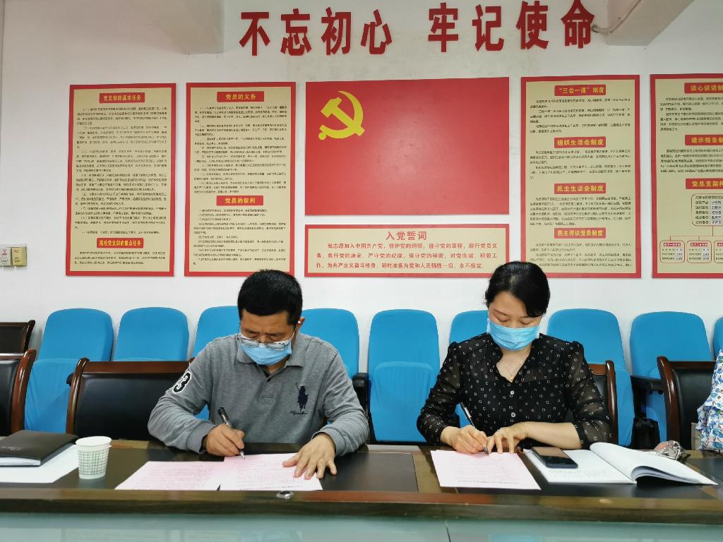 于咏梅分别与党支部、教师代表签订了全面从严治党、稳定安全责任书和意识形态工作责任书。