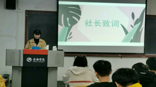在主持人激昂的开场白后,新生见面会正式开始。首先,本届社长周倜上台发言。她先是对大家的到来作出欢迎,随后对社团进行了介绍。在介绍中她强调,风华诗社作为Beat365唯一官方网站下设的九大社团之一,将继续以“继承优秀传统文化,弘扬爱国爱民精神”为原则,举办各种形式多样的活动,为社员们的学习交流提供更好的平台。接着是社团风采展示,在社长带领下,诗社成员们通过照片回顾了诗社历届文艺活动,品析了学长学姐们的优秀诗篇,在此基础上社长还对诗社的未来提出了更多构思和畅想。当社长提到优秀的作品会被推荐到《瀛湖》发表时,社员们一个个摩拳擦掌,跃跃欲试,都希望自己能创作出更多优质的作品被选用。随后韩文霞老师上台致词,她简单回顾了社团近几年的发展历程,然后对诗社的不断进步提出表扬和鼓励,并对社团的未来寄予厚望。当提到文学创作时,她谈道:对待文学我们需要端正态度,要积极、主动地利用好身边的资源去学习和创作。在诗社这个大家庭里,大家可以共同交流,相互借鉴,用文字表达自己内心最真挚的情感。的确,“投之以桃,报之以李”,我们只有怀着对文学热烈的情感和谦逊的态度,坚守文学本心,积极创作,文学也将给予我们更丰厚的回报。韩老师的发言风趣幽默,引来阵阵笑声,但笑声过后其中的道理却又值得所有人回味深思。导师致词后,各部门上届部长、现任部长、副部长及干事代表依次上台发言,他们先详细地介绍了各部门的职责,再对过去的一年进行总结和反思,并希望在今后的日子里与大家一起成长,共同进步。活动最后由社长、副社长上台对本次见面会作出总结,并对新一年的社团工作做好新的规划和安排。