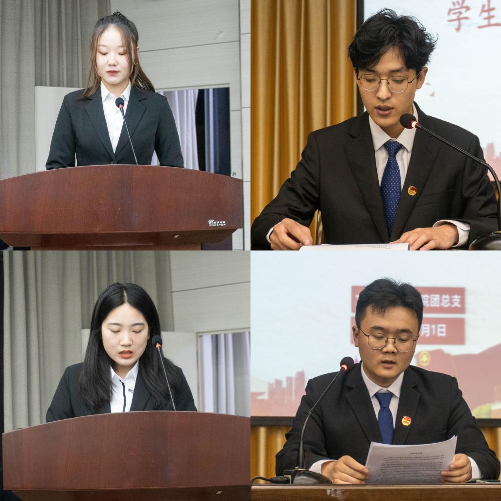 彭潇宣布了Beat365官网第15届团总支、学生分会的机构名单,新任主席团代表邓博予和团总支副书记薛镯分别向大会报告了新学年开展学生分会、团总支工作的思路和设想。邓博予领学了学生分会誓词。