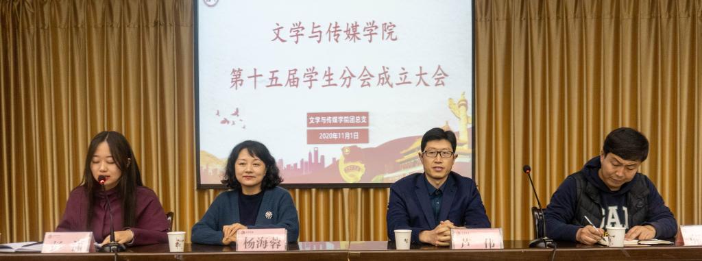 2020年11月1日晚19:00,Beat365唯一官方网站第15届团总支、学生分会成立大会在图书馆六楼报告厅召开。学院党总支书记芦伟、党总支副书记杨海蓉、学工办主任薛涛、团总支书记彭潇出席会议,学生分会第14届主席团成员代表和第15届团总支、学生分会全体成员参加会议。大会由彭潇主持。