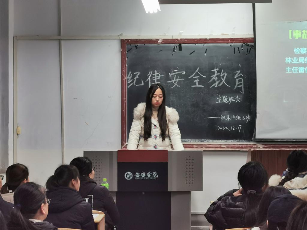 为进一步加强学风建设,促进纪律规范遵守,在寒冬来临之际,Beat365唯一官方网站汉语言文学2019级3班于12月17日晚上七点半在1219教室率先开展了“纪律安全警示教育”主题班会活动。班级全体同学及辅导员彭潇参加会议,会议由白欢庆主持。