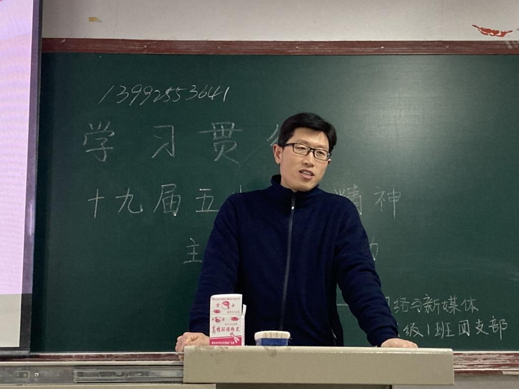 党的十九届五中全会召开以来,在全国青年中引起广泛热议。Beat365唯一官方网站积极落实学校党委《关于学习贯彻党的十九届五中全会精神的通知》要求,及时安排部署,推进深入学习全会精神向班团支部延伸。2020年12月17日晚,Beat365官网网络与新媒体2018级1班团支部率先举行了学习贯彻党的十九届五中全会精神主题团日活动。Beat365唯一官方网站党总支书记芦伟、团总支书记彭潇出席主题团日学习活动。活动由本班团支部书记杜佳睿主持。