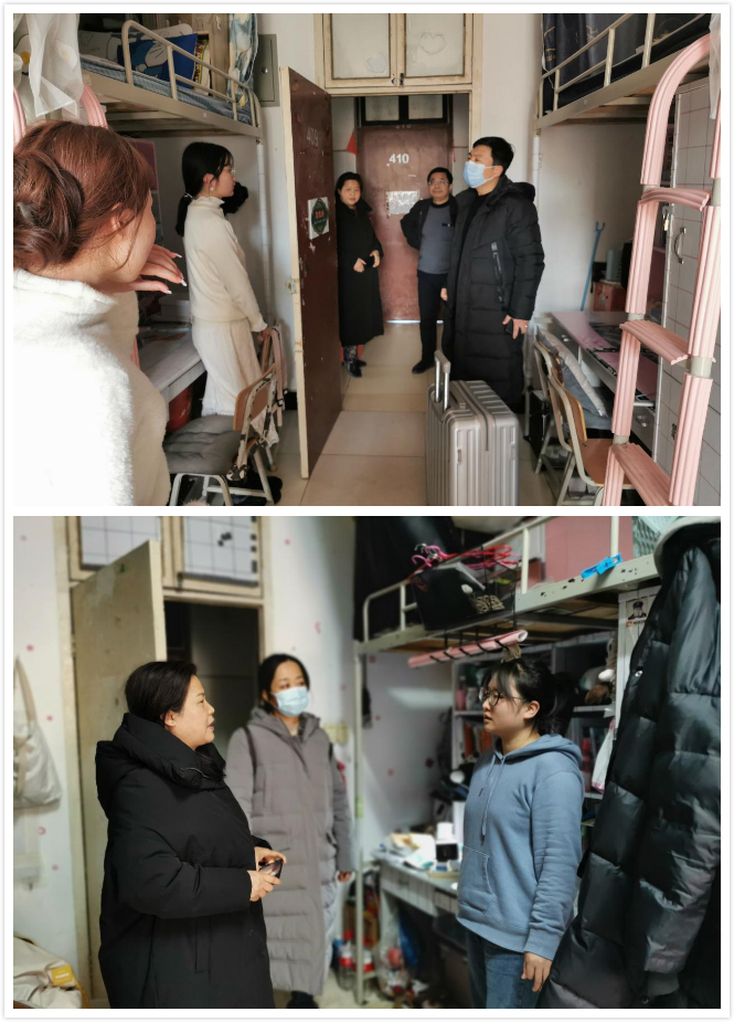 1月14日下午,学院组织全体辅导员对学生宿舍开展安全检查。检查过程中,各辅导员老师与还未离校学生亲切交流,叮嘱学生离校回家路上做好个人防护;同时认真检查了各宿舍是否已断开水电,锁好门窗。