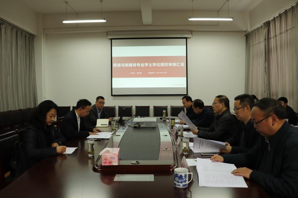 Beat365唯一官方网站院长杨运庚代表学院就网络与新媒体专业的专业特色、师资力量、办学条件、教学运行和管理、科研成果、学生成果等进行了详细汇报。与会专家听取汇报后,认真审阅了申报材料,走访了实训室,并分两个小组与教师代表和学生代表开展座谈。座谈会后,专家组成员对申报材料、走访座谈情况进行了反馈,并对网络与新媒体专业的下一步建设提出了中肯的建议。最后,专家组投票表决,一致认为网络与新媒体专业已经具备授予学士学位的基本条件,同意增列为学士学位授权专业。