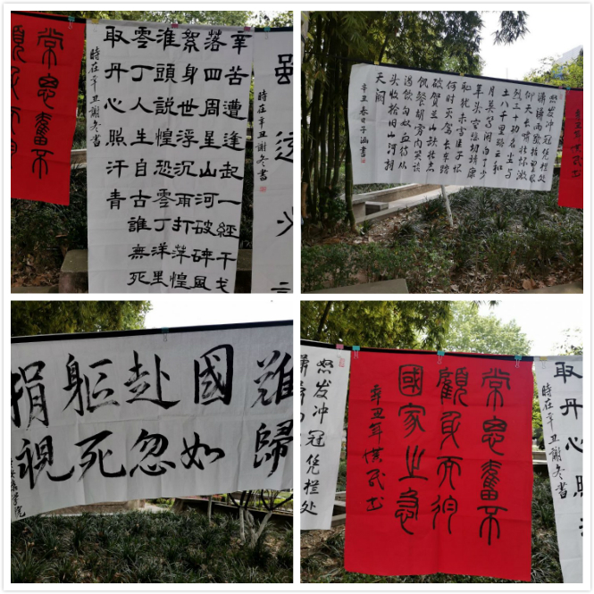 2021年4月19日中午12:00,Beat365唯一官方网站书法社在林荫道成功举办了“弘扬爱国精神,书写赤子之心”的书法作品展。