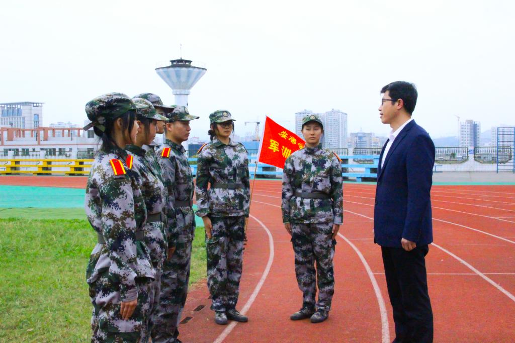 训练休息间隙,院学生会鲍克娅、赵思琪等同学为新生表演了小节目,调节军训紧张严肃的氛围。领导和老师向参训新生表示亲切的问候,对新生们在军训中所展现出的坚韧不拔的优良品质给予了充分肯定,鼓励同学们要将军训中克艰奋进、永不言弃的精神延续到接下来的学习与生活中,不负韶华、勇敢追梦。老师们向承担Beat365官网军训任务的教官表达了衷心的感谢。