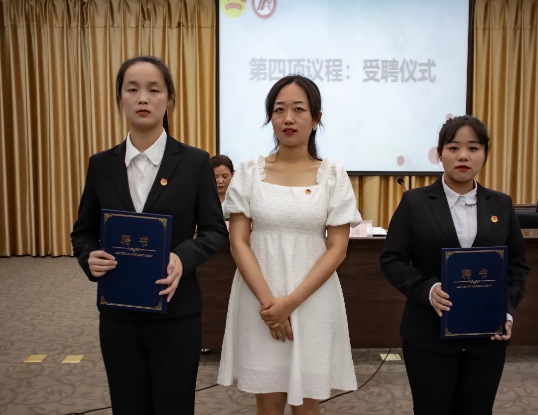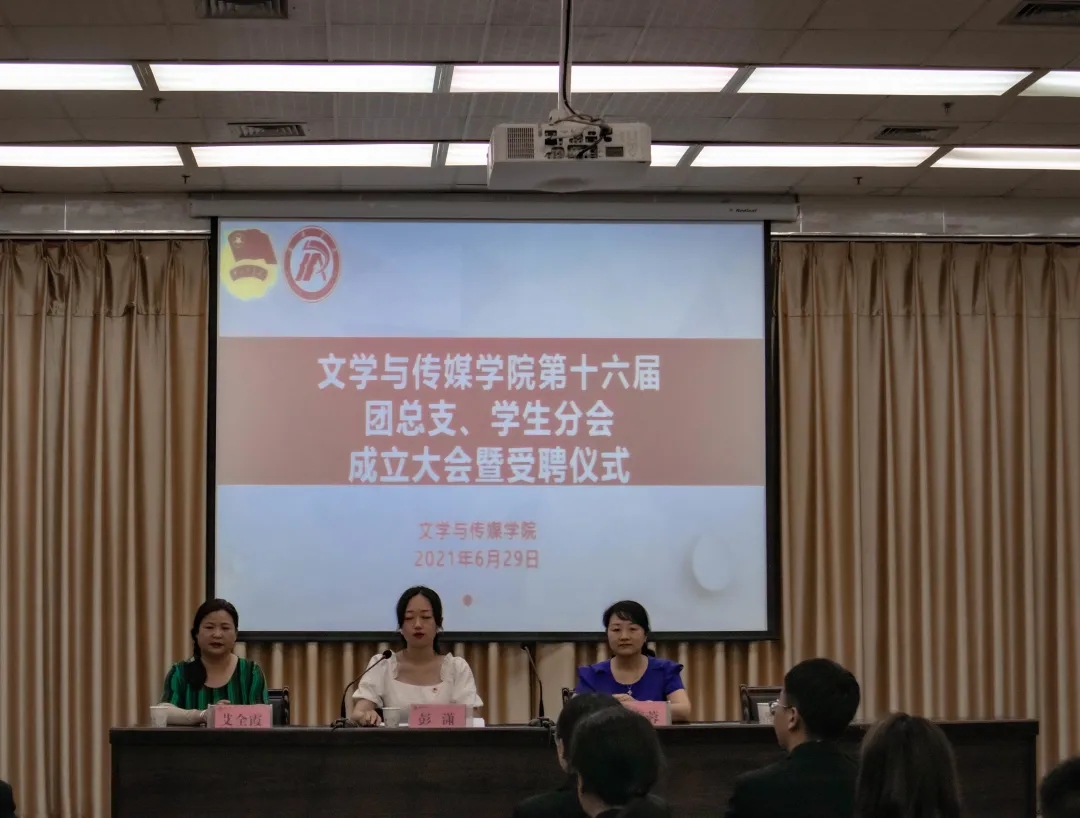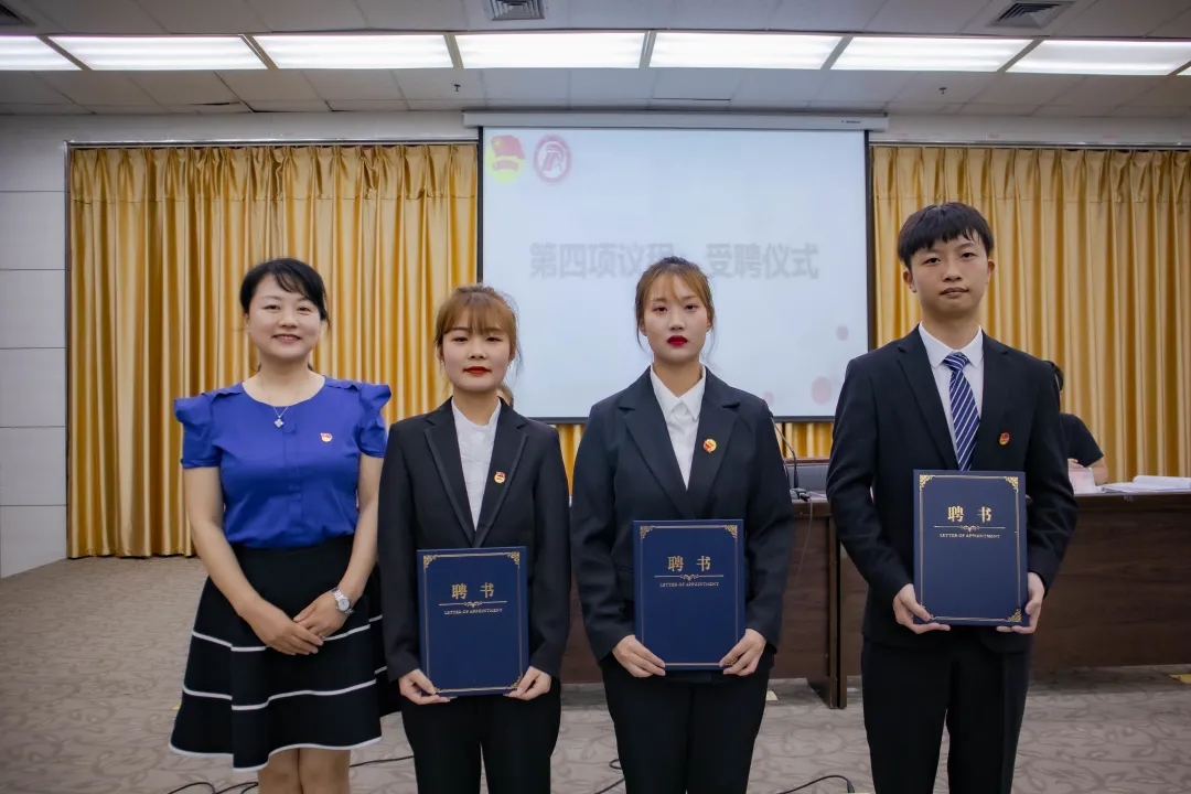 彭潇、杨海蓉分别为新一届团总支副书记苏圆、胡钰梽、新一届学生分会主席团成员范璐、康怡帆、王珂欣颁发了聘书。