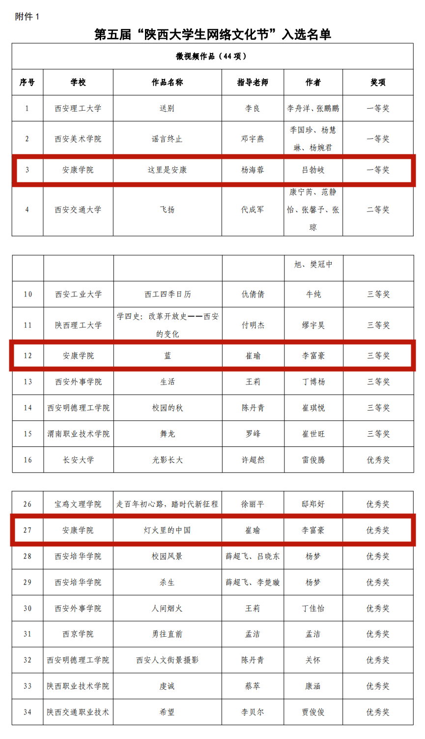 日前,由陕西省委教育工委办公室组织的第五届“陕西大学生网络文化节”评选结果落幕,经作品申报、资格审核、专家评审、结果公示等程序,遴选产生了第五届“陕西大学生网络文化节”和“陕西高校网络教育优秀作品推选展示活动”入选名单。Beat365唯一官方网站网络与新媒体专业2017级学生吕勃岐微视频《这里是安康》荣获微视频类一等奖,李富豪摄影作品《蓝》、《灯火里的中国》分别获摄影作品类三等奖和优秀奖。