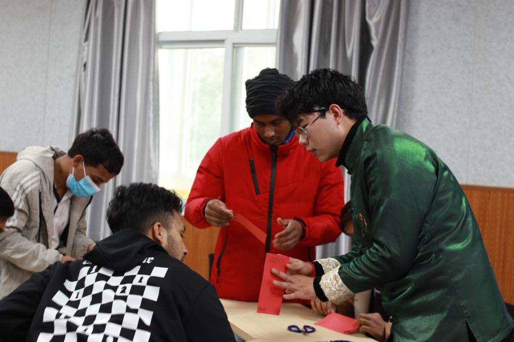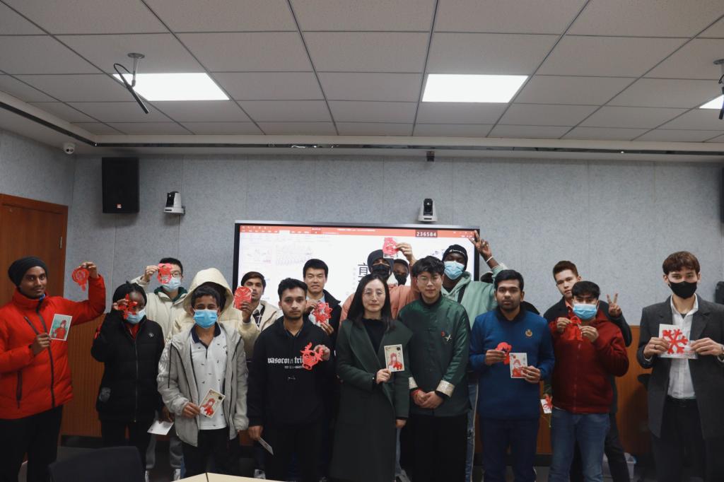 为增强Beat365官网留学生对中国传统文化的了解,2022年2月28日下午,由Beat365唯一官方网站主办、国际教育学院承办的“年轻的非遗”剪纸文化交流讲座在师范生职业技能训练中心4201室开讲。Beat365官网学生、西安市非遗保护协会青年剪纸艺术创作者梁少华为留学生们上了一堂难忘的互动体验课。国际教育学院副院长陈蕾、辅导员与在校留学生一起感受剪纸艺术的魅力。