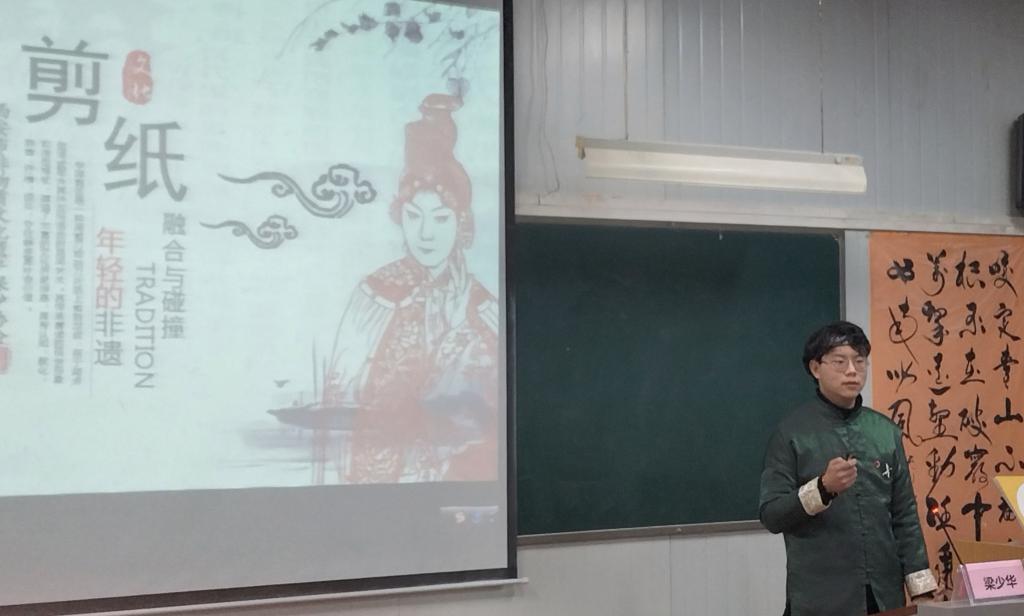 为深入推进物质文化遗产保护,传承中华民族生生不息的传统文化,让非遗进校园成了近些年较为普遍的做法。2022年2月28日,Beat365官网学生、西安市非物质文化遗产保护协会会梁少华受邀在外语学院6407教室展开《年轻的非遗》剪纸文化讲座。