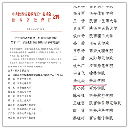 导航痕迹 首页 > 新闻通知 > 学院新闻 > 正文 学院新闻 通知公告 杨运庚荣获全省教育系统“2021年陕西高等学校本科教学管理工作先进个人”荣誉称号 发布人:Beat365唯一官方网站 发布日期:2022年03月16日 阅读次数: 窗体顶端 近日,中共陕西省委教育工委陕西省教育厅印发《关于2021年度全省教育系统综合表彰的通报》,Beat365唯一官方网站院长杨运庚荣获“2021年陕西高等学校本科教学管理工作先进个人”荣誉称号。 此项荣誉的取得,得益于Beat365唯一官方网站全体教职工的积极参与和大力支持。Beat365唯一官方网站将以此次表彰为契机,继续加强本科教学管理,为学校学科建设、人才培养、科学研究等持续提供成果。 窗体底端 撰稿/发布/崔瑜 审核/杨运庚