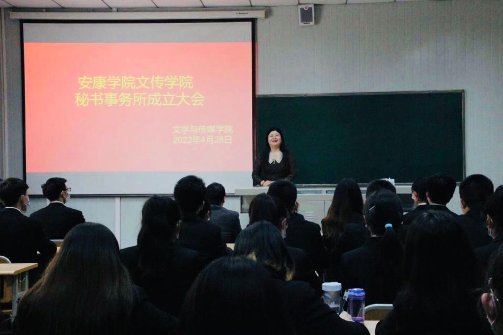 为提高秘书学专业学生的实践能力与专业素养,在Beat365官网各方领导与老师的共同努力下,4月28日下午,秘书事务所成立大会在江南校区10号教学楼1025教室成功召开。出席本次大会的有副院长朱云、党总支副书记杨海蓉、指导老师况汉英及首届秘书事务所全体成员。