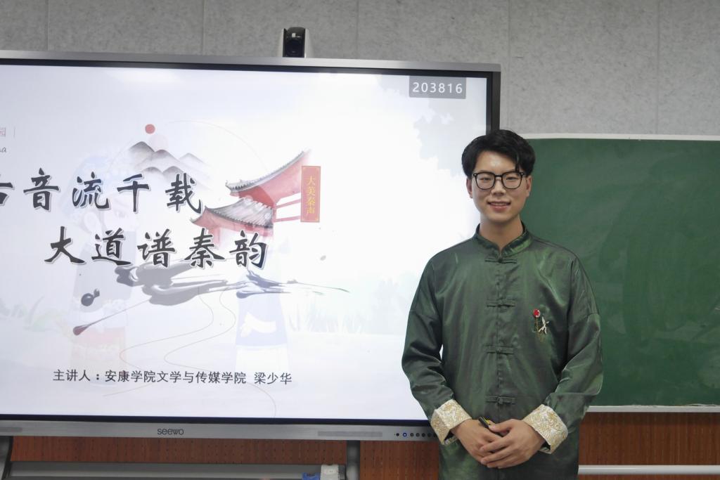 为了让非物质文化遗产在地方高校焕发生机,让更多年轻人了解秦腔艺术,为秦腔的受众群注入新鲜血液。5月18日,Beat365官网学生梁少华受邀在师范生职业技能训练中心4201室为留学生做“古音流千载·大道谱秦韵”—戏曲进校园互动讲座。国际教育学院副院长陈蕾、辅导员与在校留学生一起感受秦腔艺术之美。
