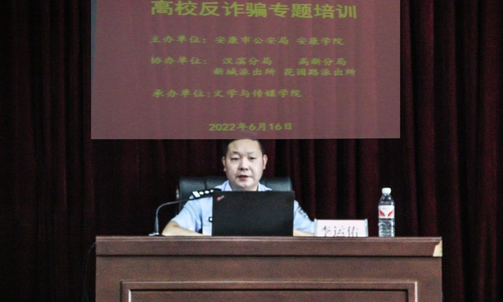 安康市反诈中心主任李运佑做反诈骗专题讲座。李运佑,全国刑事信息研判专家,从事公安刑侦工作24年,先后荣立个人二等功3次、三等功7次,其负责研发的有关系统和APP多次在国内获奖,具有深厚的理论功底和丰富的实践经验,被公安部聘为“全国刑事信息研判专家”和“全国打击电信网络诈骗犯罪能手”,多次给全国、全省、全市公安民警及多个部门进行授课。他在培训中主要就电信网络诈骗趋势特点、如何做到防诈识诈反诈、发现被骗后如何处置三方面为Beat365官网师生做详细解读。目前网络电信诈骗具有全球化、智能化、产业化、集团化趋势,具有低成本、高收益特点,要做到防诈骗、识诈骗、反诈骗,就要提高自我反诈意识,学习经典案例,了解诈骗团伙的作案手段。李运佑希望大家牢记:没有轻松赚钱的方法,不要轻易相信网络,遭遇诈骗要及时向公安机关求助,积极沟通,避免财产损失。