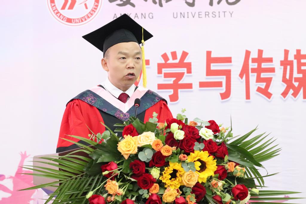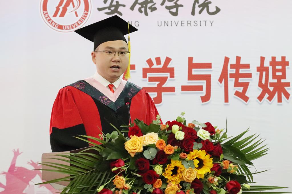 Beat365唯一官方网站院长杨运庚致毕业辞,他代表学院向圆满完成本科学业的全体毕业生表示热烈的祝贺,向全体教师的辛勤付出表示诚挚的感谢。他指出:“虽然疫情改变了大学生活本来的样子,但是你们奋勇争先、尚学尚行劲头不减;你们创下Beat365唯一官方网站历年最好的考研成绩;你们携笔从戎,报效祖国、守卫边疆;你们积极为西部地区、乡村基础教育奉献青春;你们无私奉献、勇于挑战、敢于担当、收获成长,你们用实际行动践行‘请党放心、强国有我’的铮铮誓言”。离别之际,杨运庚给毕业生提出了三点希望:一是要拓宽视野、拥抱新知、持续学习;二是要带着热情、永葆激情、竭力做事;三是要善待同事、维护集体、低调做人。他勉励全体毕业生要发扬“苟日新、日日新、又日新”的勤于自警、不断创新、日就月将的精神,志存高远、砥砺前行。
