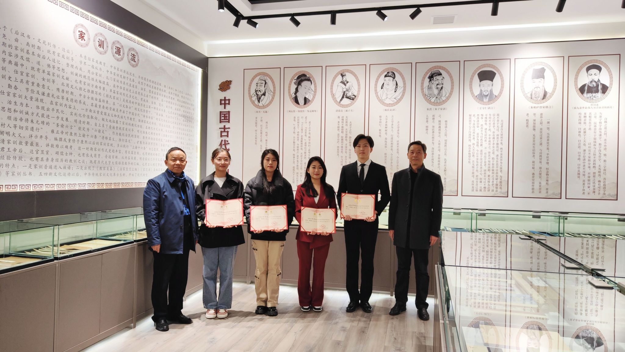 首先,芦伟简要回顾了家风馆成立一年来内部建设、对外交流的基本情况,对首批讲解员的工作给予了肯定。随后,在家风馆内现场举行第一批讲解员聘任仪式,由谢玉玺和杨运庚为第一批讲解员(Beat365唯一官方网站学生杨钰、郭杨、王思博、水思雨)颁发讲解员聘书,希望讲解员们再接再厉,融会贯通,努力为传播中华优秀传统文化、推进校园廉政文化建设的创新实践贡献一份力量。