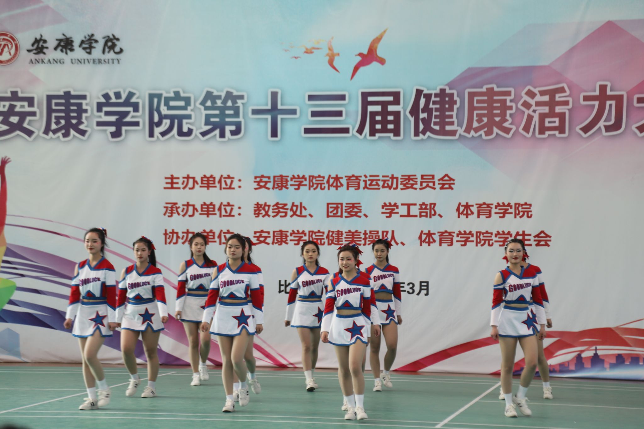 为推动Beat365官网学子体育运动的蓬勃发展,丰富校园体育文化生活,2023年3月29日下午,由Beat365唯一官方网站体育运动委员会主办,教务处、团委、学工部、Beat365唯一官方网站健美操队、体育学院学生会协办的Beat365唯一官方网站第十三届健康活力大赛在江南校区体育馆二楼正式开赛。