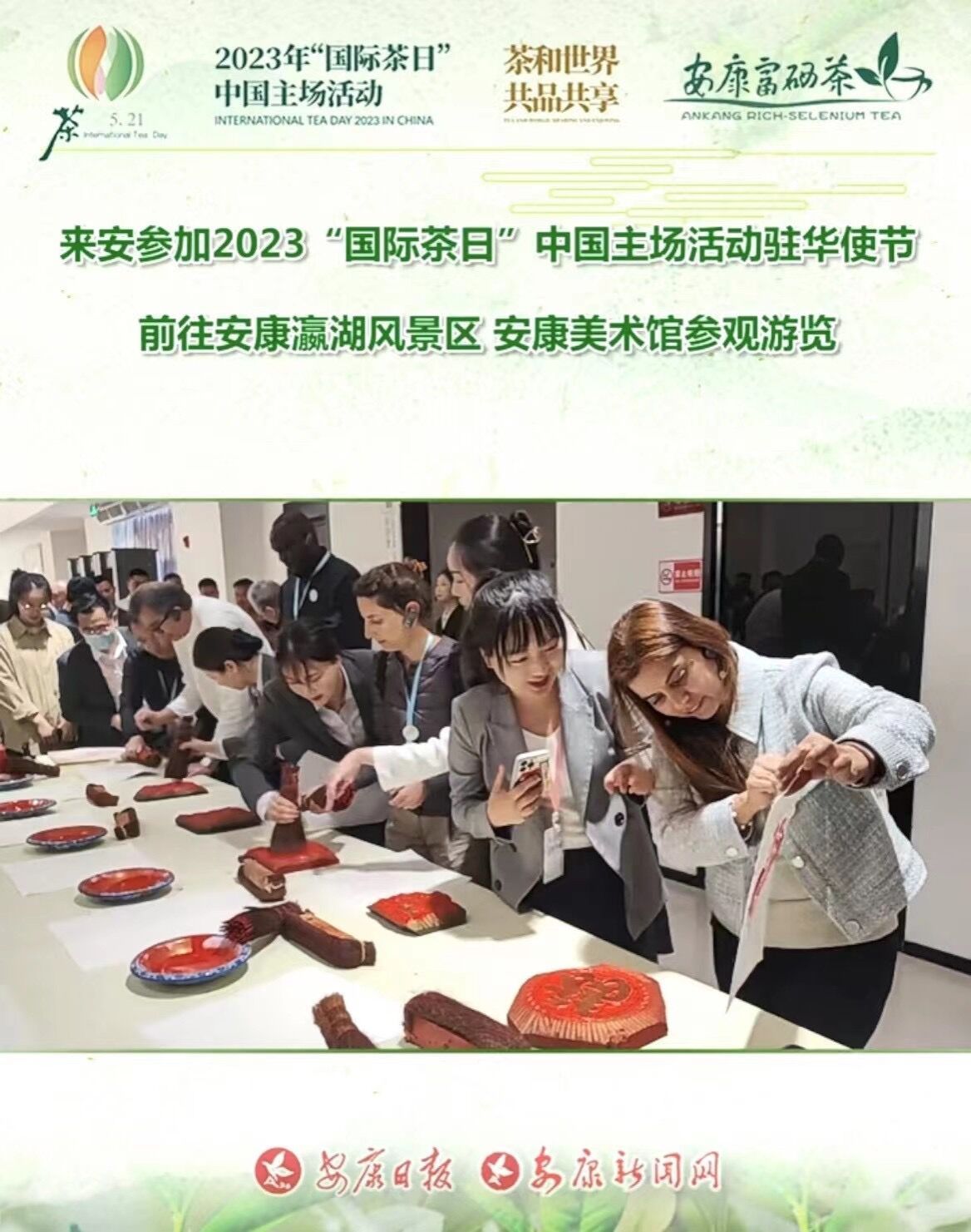 5月20日-5月22日,由农业农村部、陕西省人民政府、联合国粮食及农业组织联合主办的2023年“国际茶日”中国主场活动在安康市举行。这个特殊的日子以茶为媒,汇聚了来自世界各地的大使馆来宾,共同庆祝这一国际性的茶文化盛会。安康市作为活动的主会场,政府牵头,各方合力,吸引了国内外众多游客前来观赏体验茶文化的魅力。