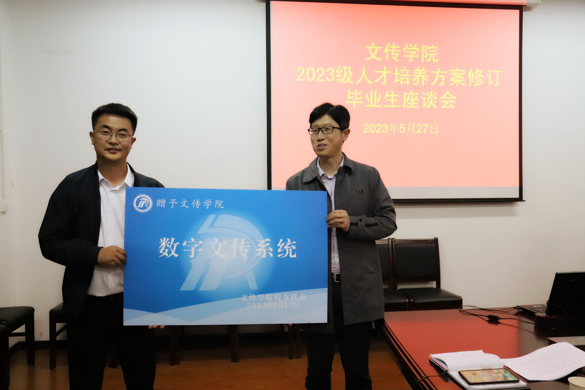 2010届校友翟晓东还向学院捐赠了“数字文传”建设系统,学院领导向返校校友赠送了学院纪念品。