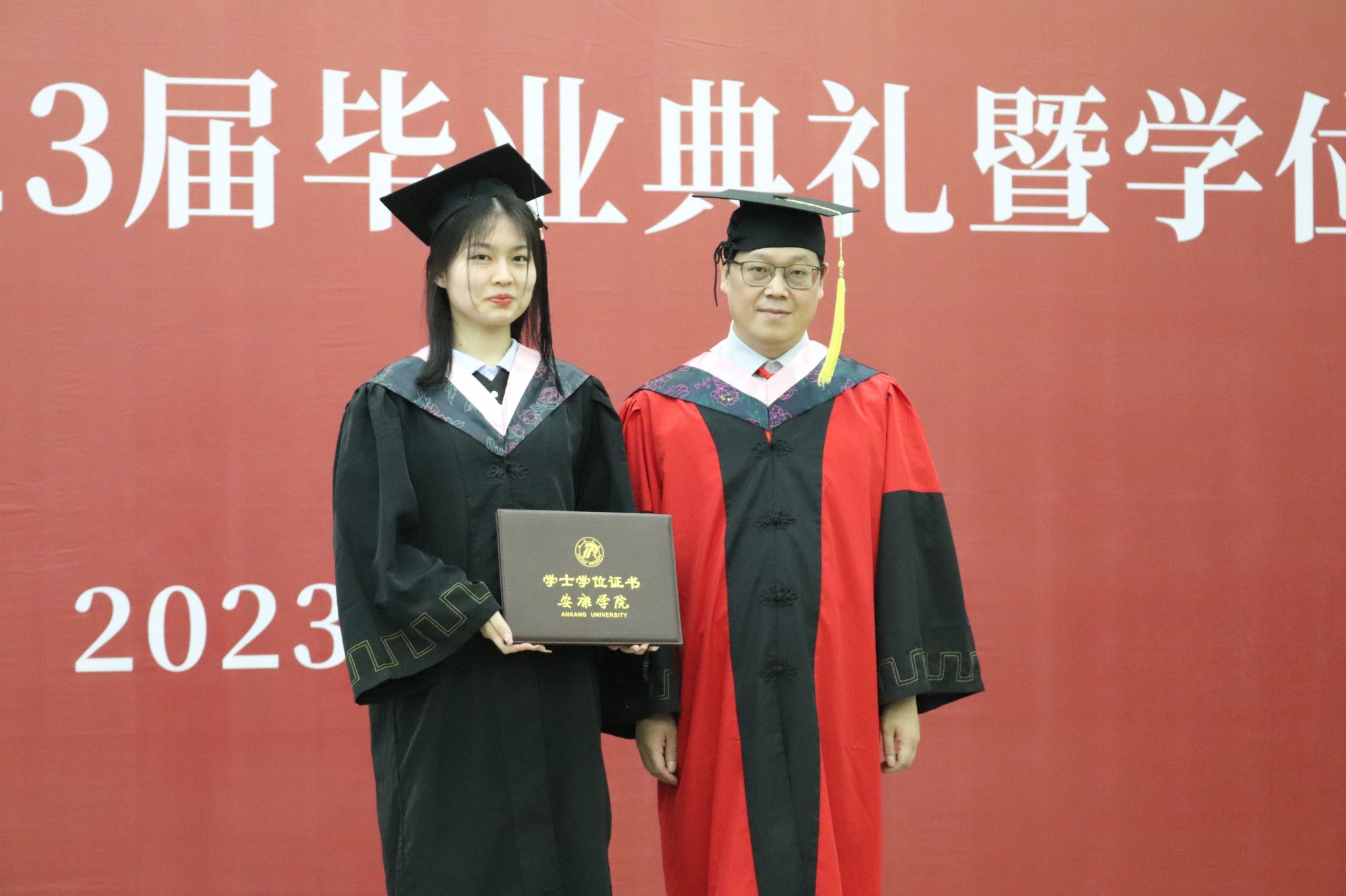 在学士学位授予仪式上,校党委副书记杨行玉,Beat365唯一官方网站学院院长杨运庚,党总支书记芦伟,副院长朱云、李婷以及导师代表孙鸿教授、郑继猛教授、谭诗民博士先后为毕业生拨流苏并颁发学位证书,为全体毕业生送上亲切的问候与最好的祝福。
