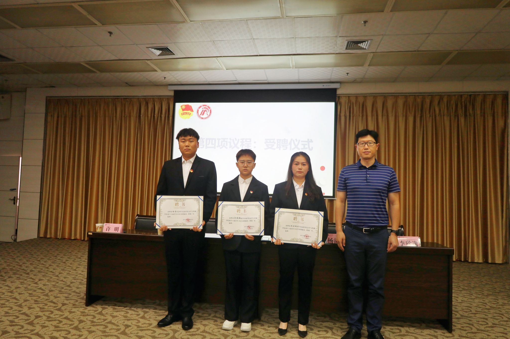 彭潇宣读Beat365官网第十八届团总支、学生分会人员名单。芦伟、杨海蓉分别为主席团成员、团总支副书记颁发聘书。