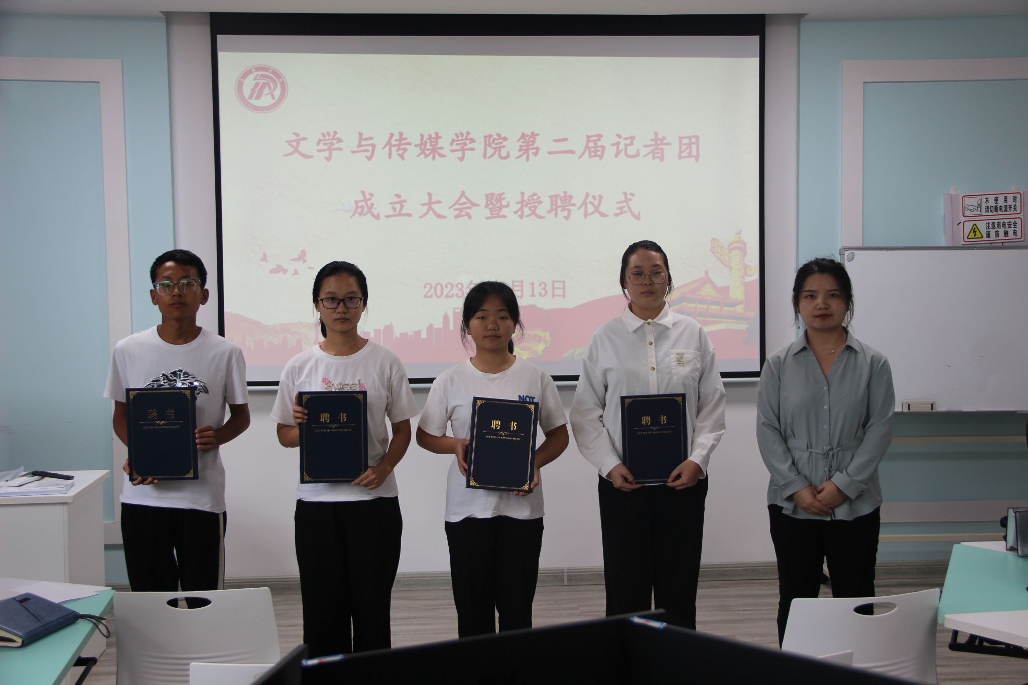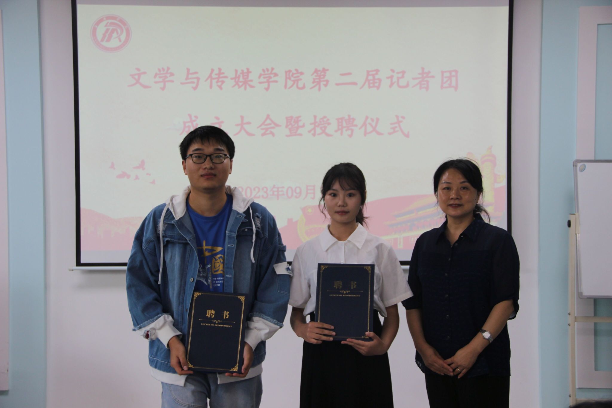 为保障Beat365唯一官方网站记者团工作的连续性,培养一批高素质、高水平的新媒体人才,持续打造Beat365官网坚强有力的宣传阵地,Beat365官网于9月13日在2414教室举行Beat365唯一官方网站第二届记者团换届大会暨受聘仪式。院党总支书记杨海蓉,团总支书记彭潇,学工办副主任薛涛,专业教师彭雅伦,辅导员李欣逸、许明和社团全体人员参会,会议由艾佳新主持。