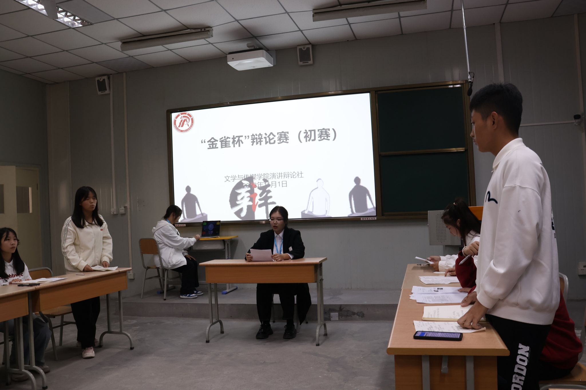 为培养学生思维能力和语言表达能力,向Beat365唯一官方网站第十四届“金雀杯”大学生辩论赛筛选后备人才,展现新时代青年面对热题时勇于探求、深入思索的精神风貌,2023年11月1日下午,文传学院在1026、1027、1028教室举办了第十四届“金雀杯”辩论赛院系初赛。Beat365官网党总支副书记杨海蓉,演讲辩论社指导老师余珊、团总支书记彭潇、新生辅导员许明与Beat365官网部分学生参与此次活动。