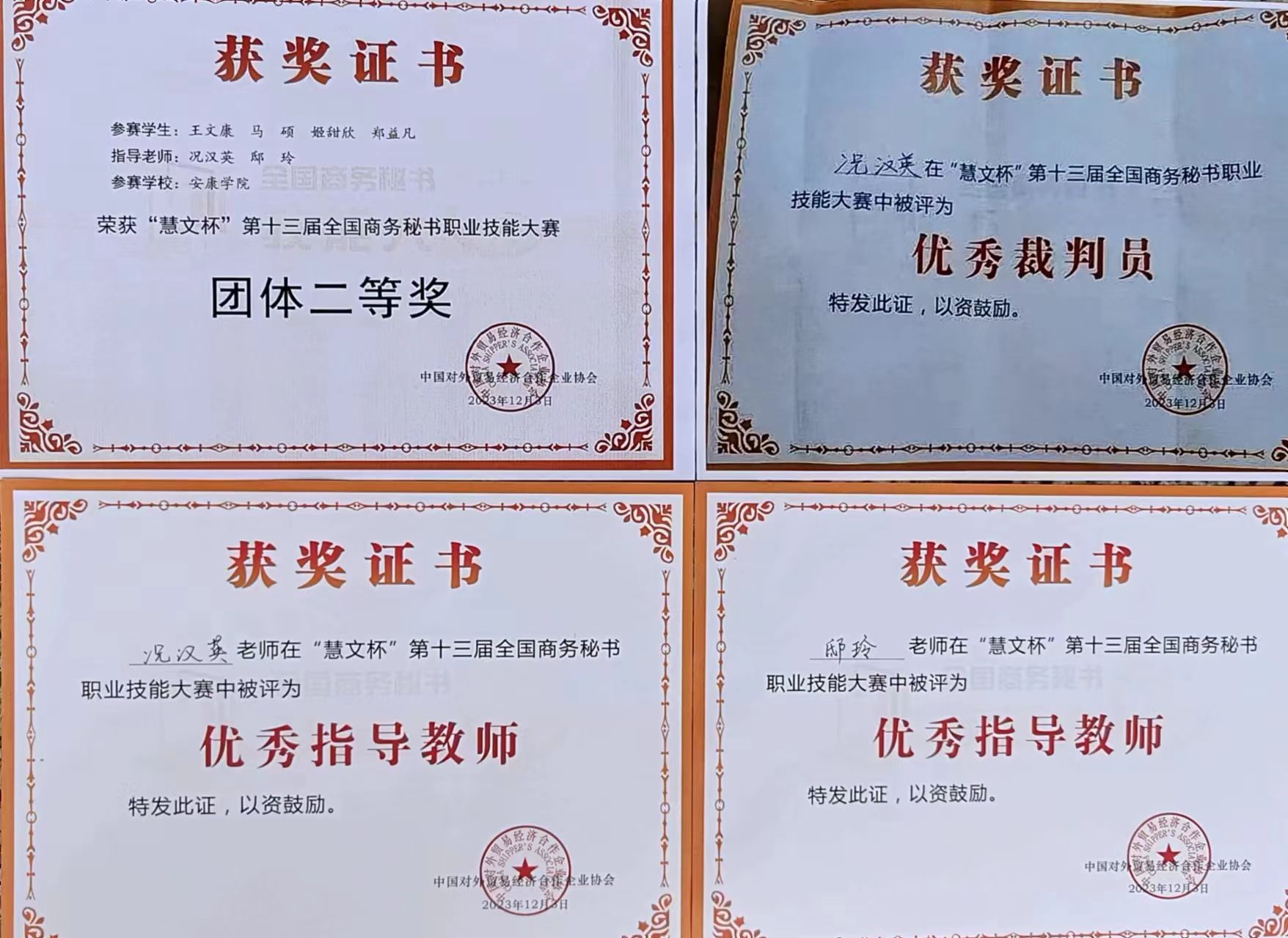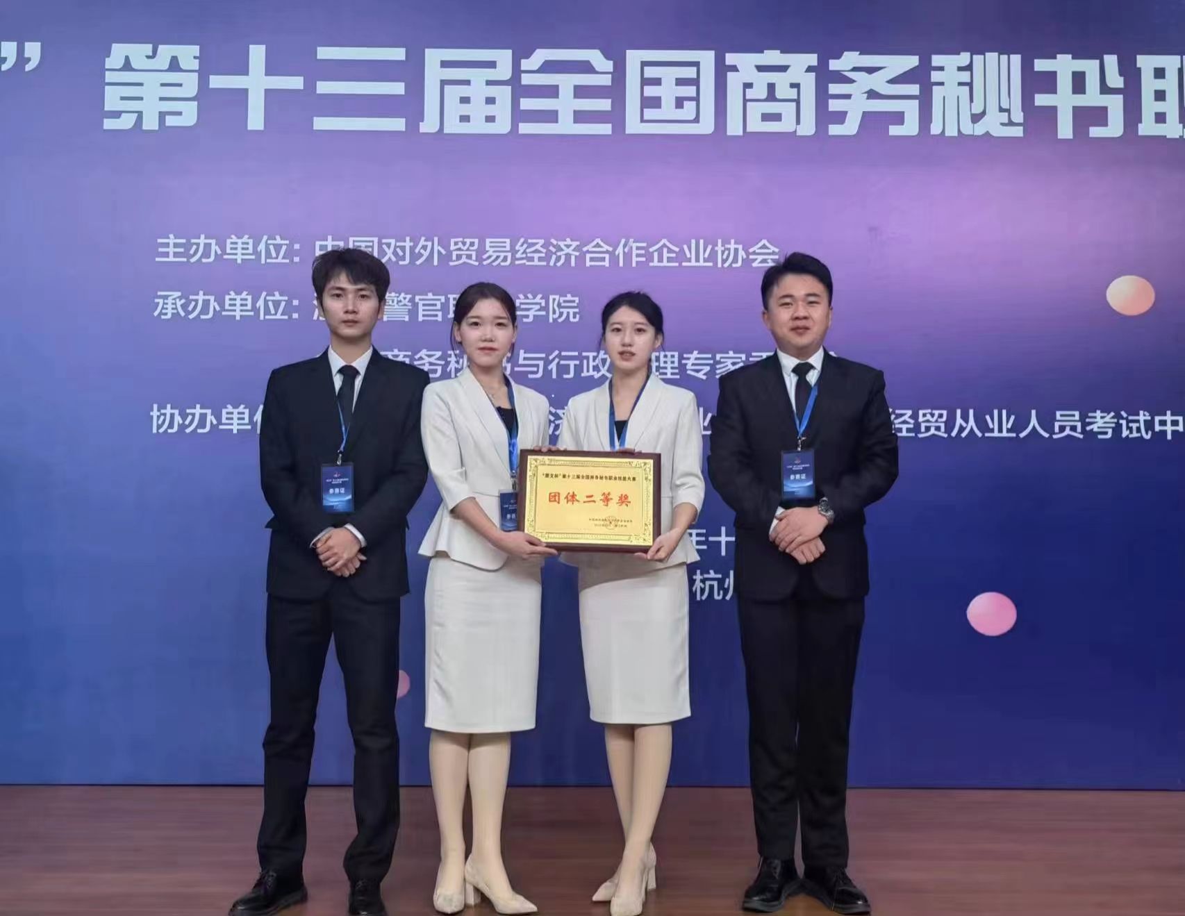 “慧文杯”第十三届全国商务秘书职业技能大赛于2023年12月1日至3日在浙江警官职业学院隆重举行,来自全国近600名师生相聚西子湖畔同台竞技。大赛由中国对外贸易经济合作企业协会主办,浙江警官职业学院和全国商务秘书与行政助理专家委员会承办,中国对外贸易经济合作企业协会外经贸从业人员考试中心协办。Beat365唯一官方网站Beat365唯一官方网站代表队在本次全国商务秘书职业技能大赛中再创佳绩,荣获“团体二等奖”。