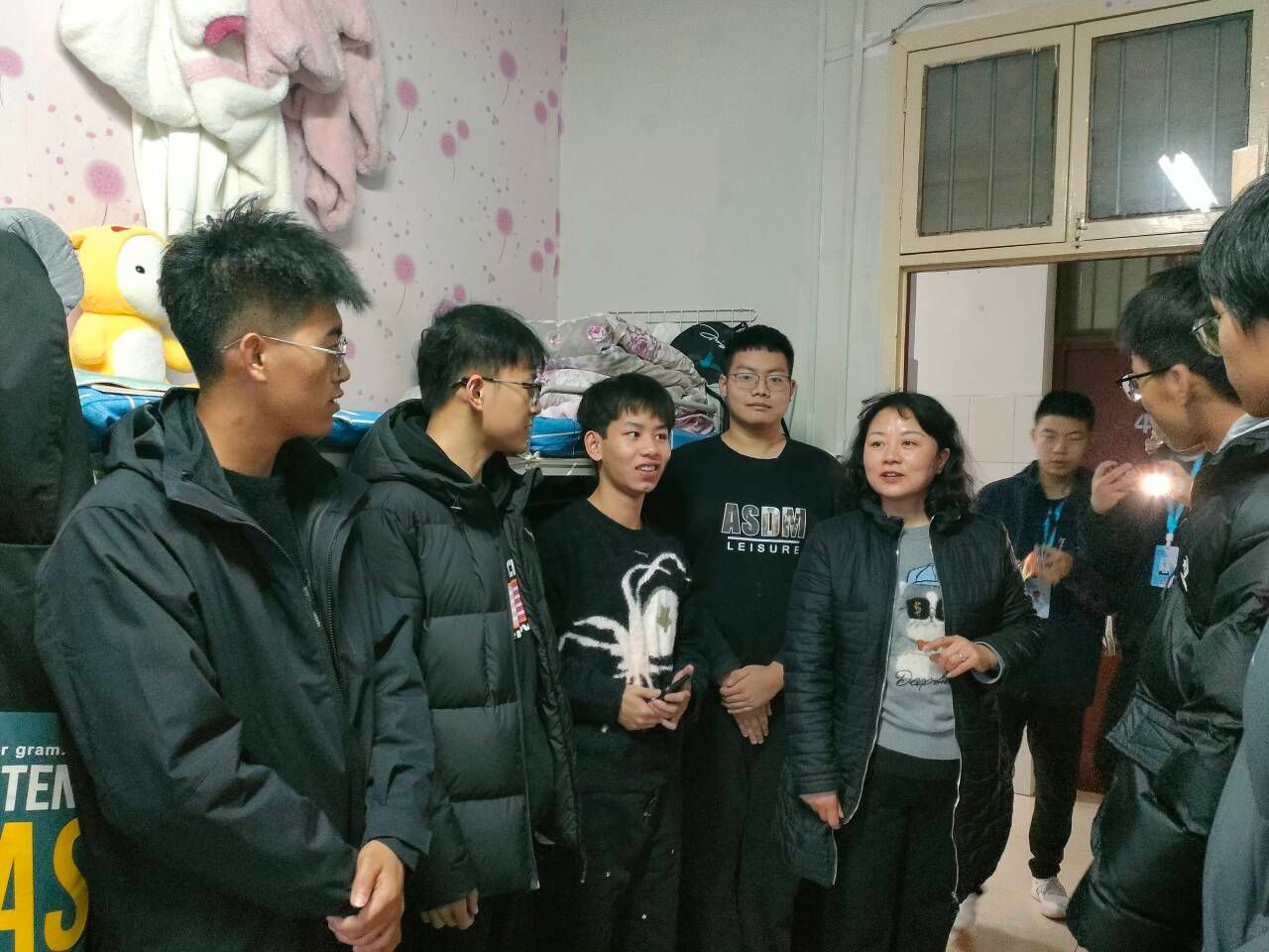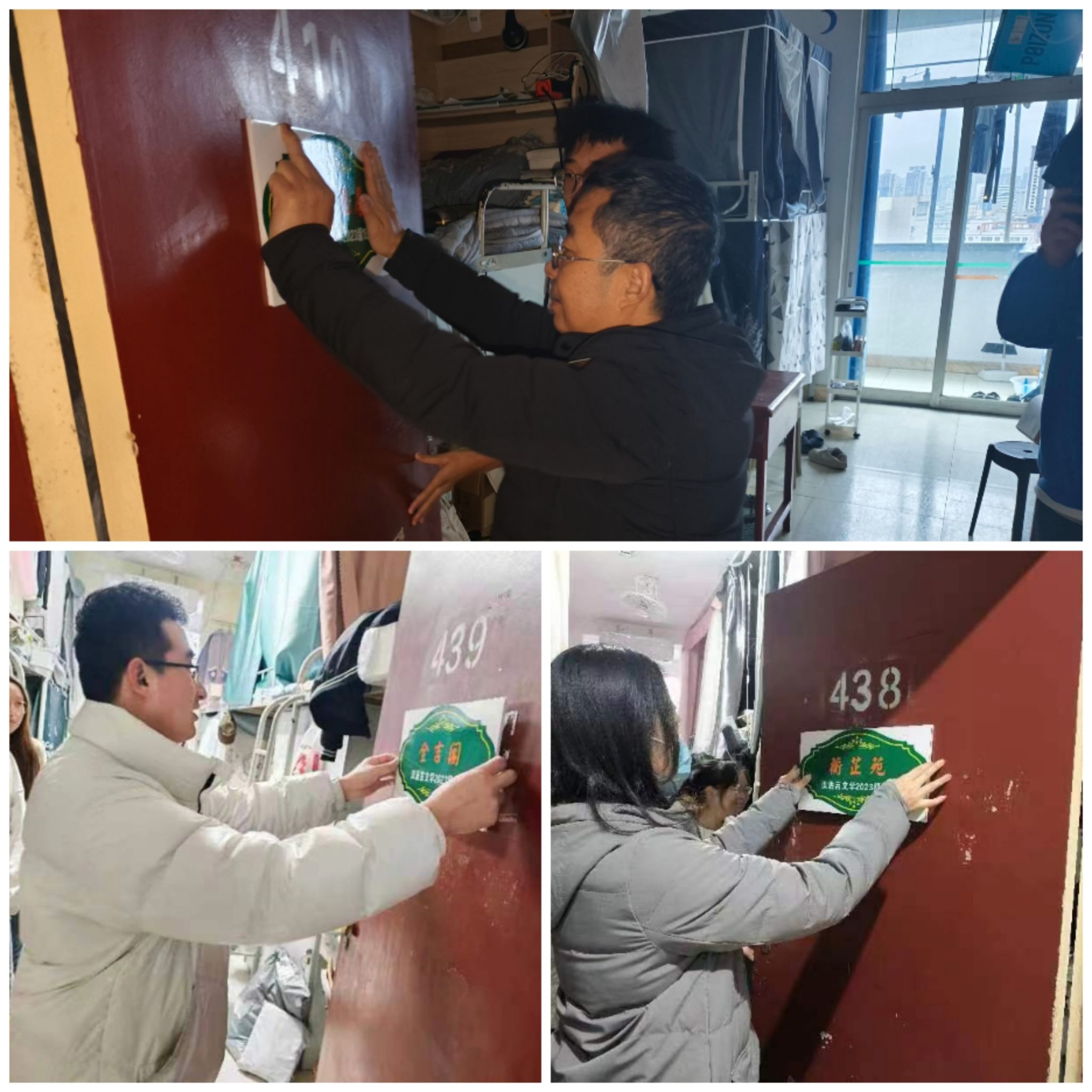 各位老师在深入宿舍和挂牌的过程中,仔细查看宿舍安全隐患、询问学生宿舍关系和作息等情况,强调宿舍要和睦相处,保持宿舍清洁卫生,并排查了宿舍安全隐患。