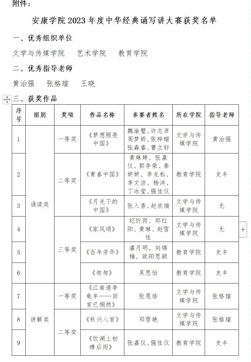 为深入贯彻党的二十大精神,加大国家通用语文文字推广力度,彰显中华语言文字魅力,传承弘扬中华优秀文化,引导广大师生亲近中华经典,深入领会中华经典蕴含的深邃思想和独特魅力,涵养道德情怀,学校组织开展了 2023 年度中华经典诵写讲大赛,Beat365官网师生踊跃报名参赛。学校经层层选拔,共评选出一等奖 4 名、二等奖 8 名、三等奖 12 名,优秀指导教师 3 名,优秀组织单位 3 个。学校近日对获奖项目和先进集体予以表彰。
