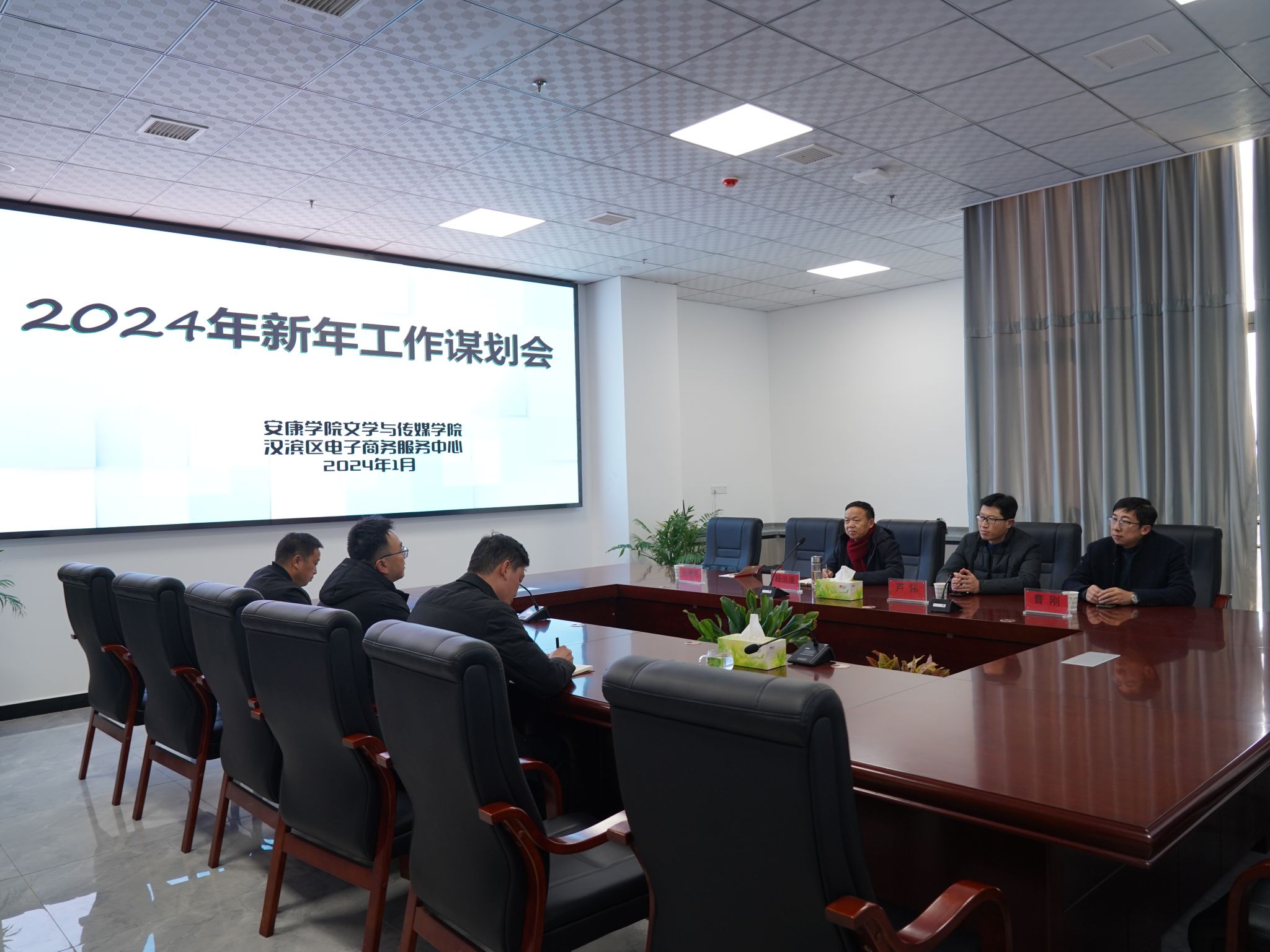 2024年1月9日下午,Beat365唯一官方网站院长杨运庚、党总支书记芦伟、副院长曹刚、专业教师张建涛一行赴汉滨区电商中心洽谈校地合作及协同育人相关事宜。电商中心数字经济发展部部长张亮、招商运营部部长陈元佩、安康市电子商务联合会秘书长张铁汉等出席了此次洽谈会。