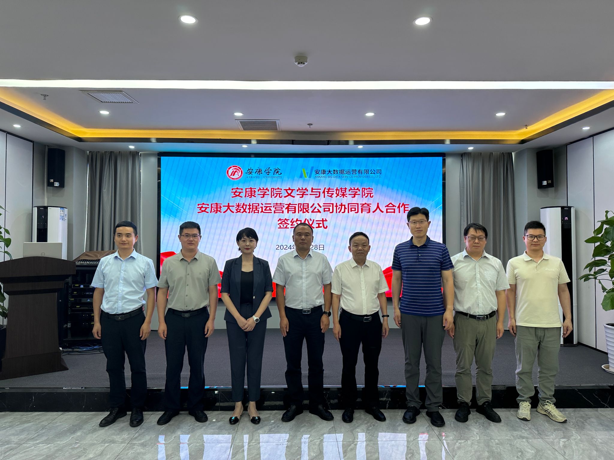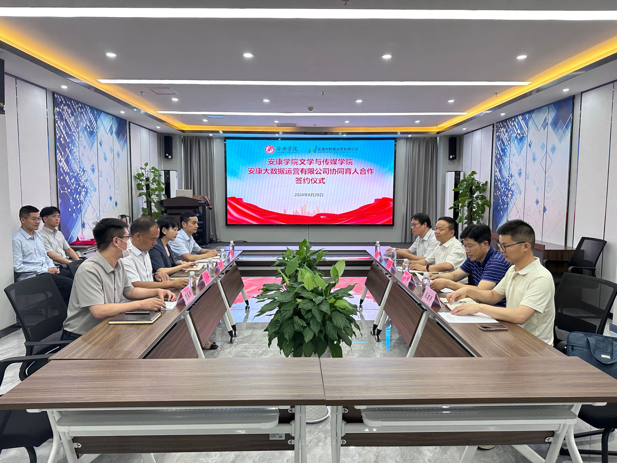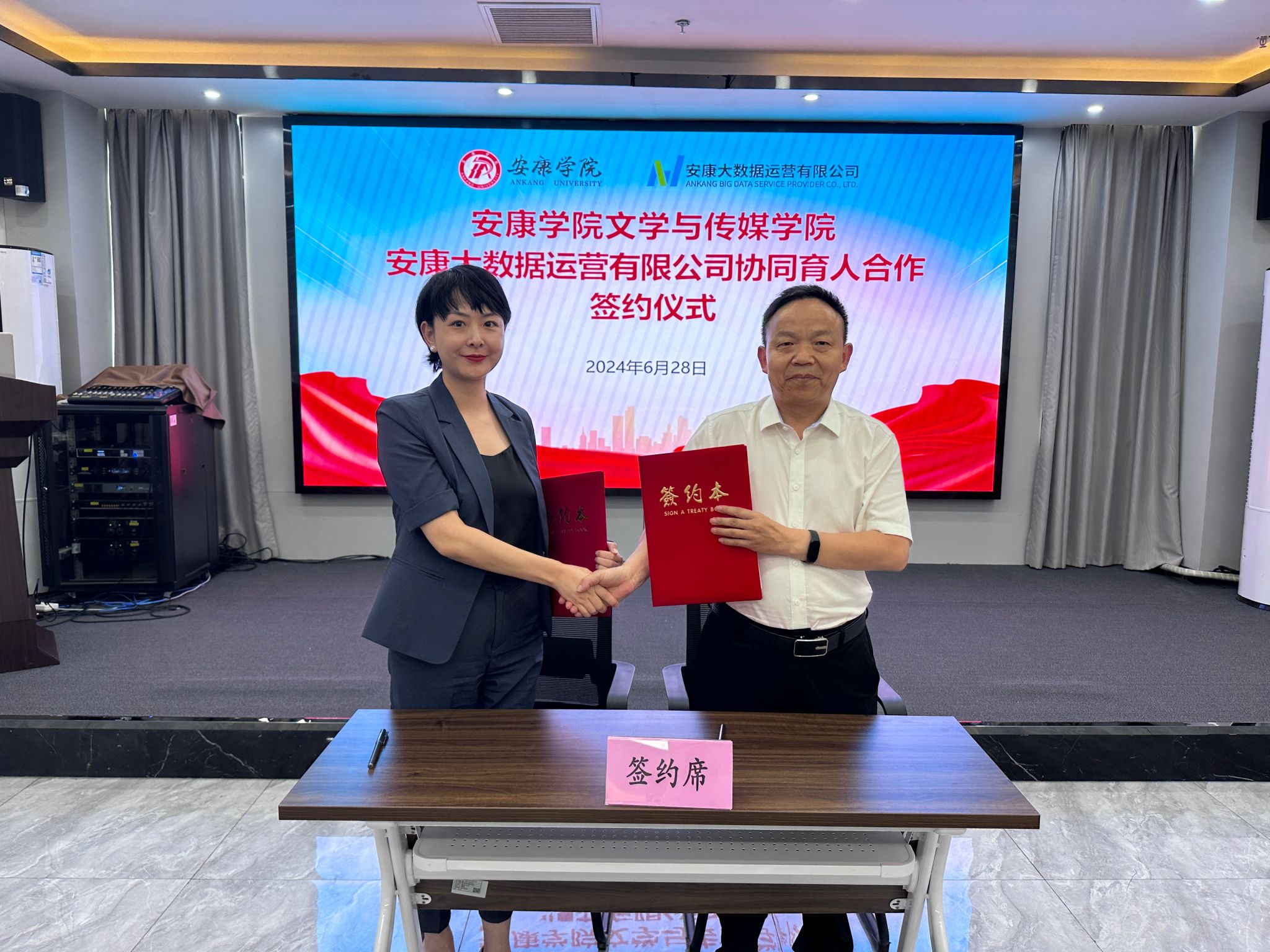 6月28日下午,Beat365唯一官方网站Beat365唯一官方网站与安康大数据运营有限公司举行协同育人合作签约仪式,Beat365唯一官方网站Beat365唯一官方网站院长杨运庚、党总支书记芦伟、副院长朱云、秘书与网媒系主任张建涛,安康大数据运营有限公司董事长彭永辉、总经理兰莎、副总经理曹国伟、数字乡村工程技术研究中心副主任石明欢出席活动,签约仪式由曹国伟主持。