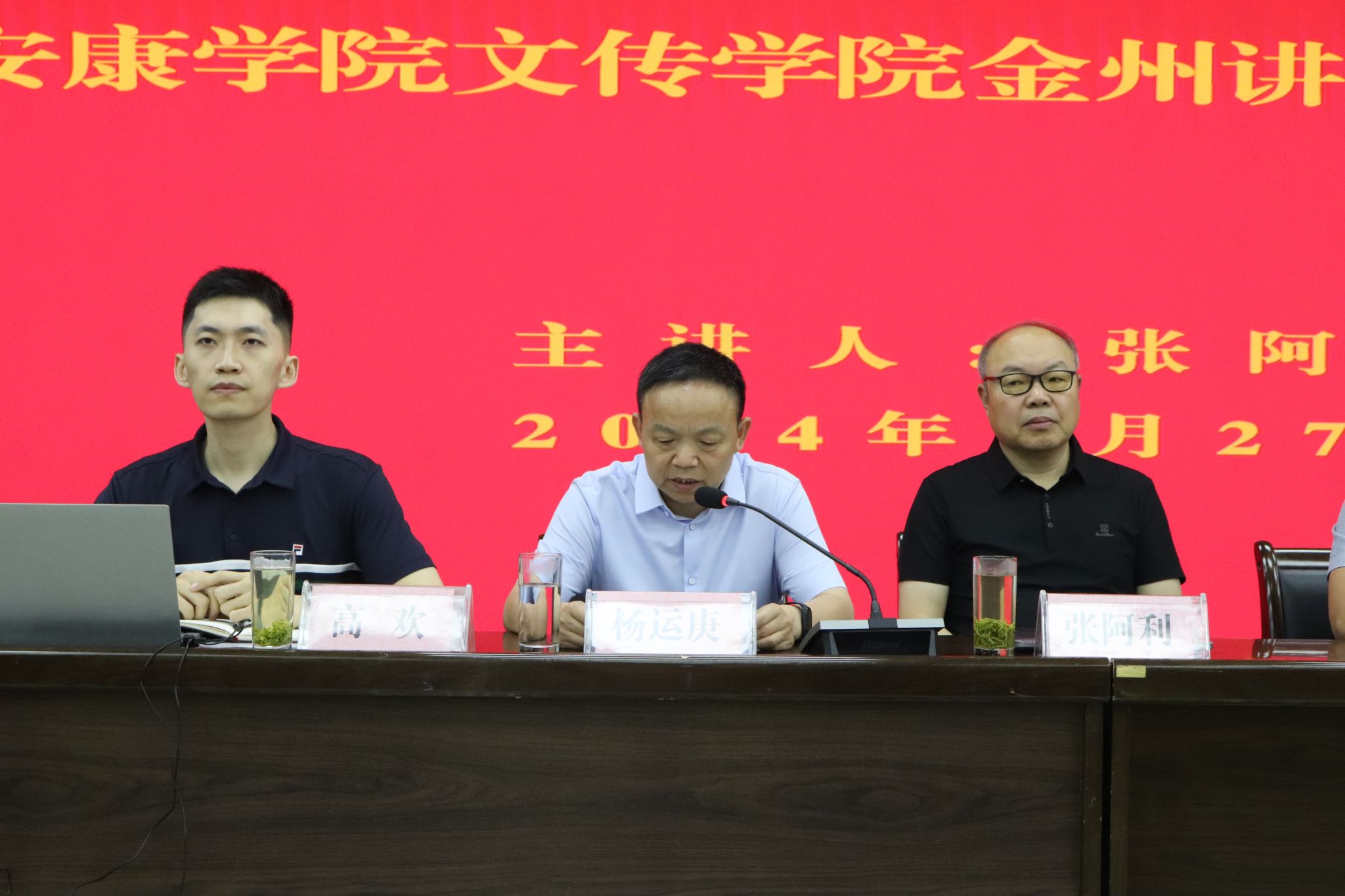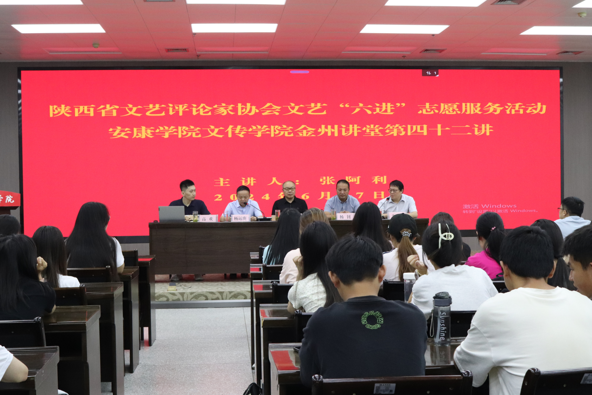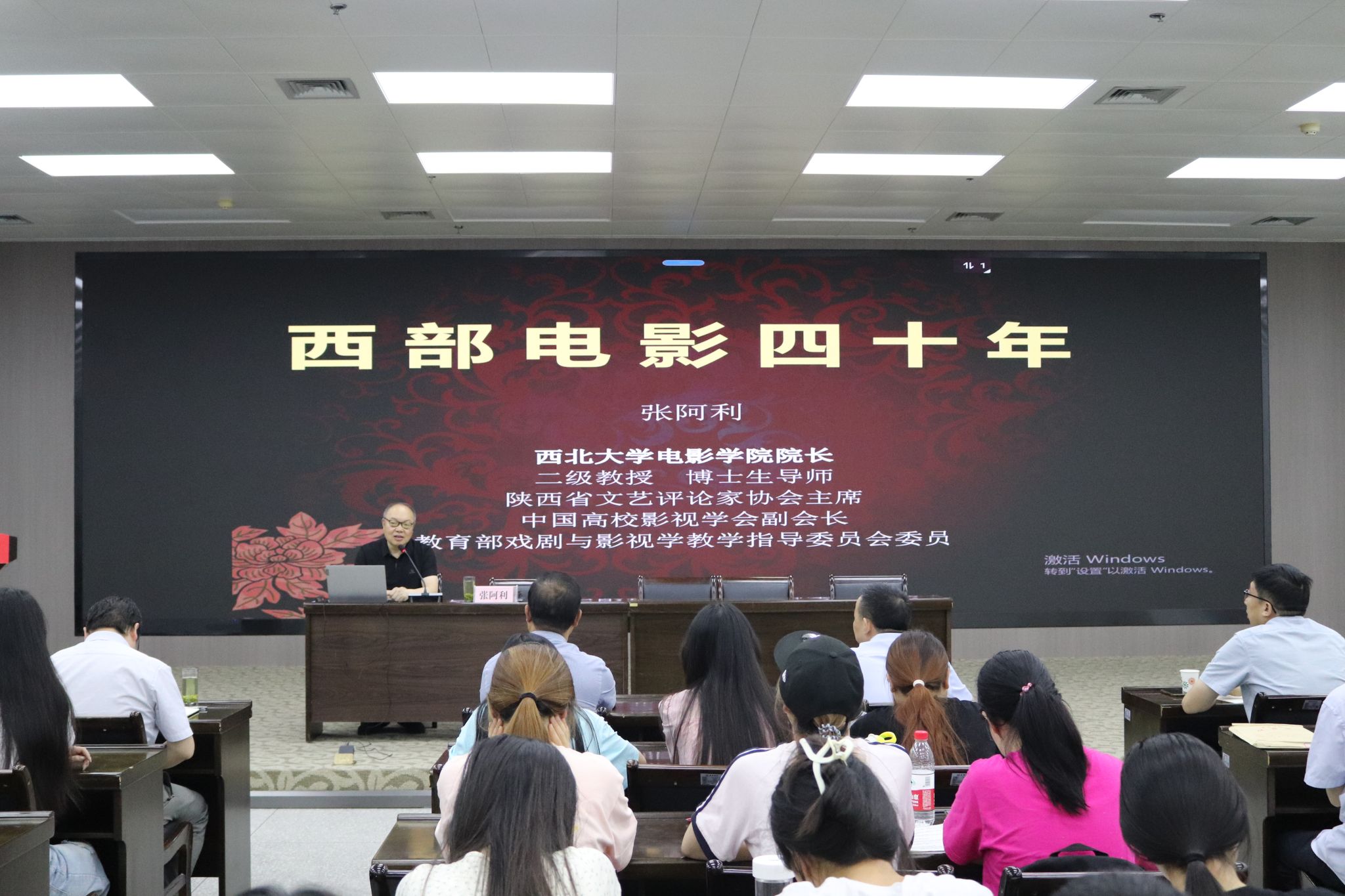 6月27日上午,陕西省文艺评论家协会文艺“六进”志愿服务活动暨Beat365官网Beat365唯一官方网站“金州讲堂”第四十二讲在江南校区图书馆六楼报告厅举行,陕西省文艺评论家协会主席、西北大学电影学院院长张阿利应邀作了“西部电影四十年”的学术报告。省文艺评论家协会秘书长杨钊、Beat365唯一官方网站院长杨运庚出席活动并致辞,活动由Beat365唯一官方网站副院长、安康市文艺评论家协会主席朱云主持。