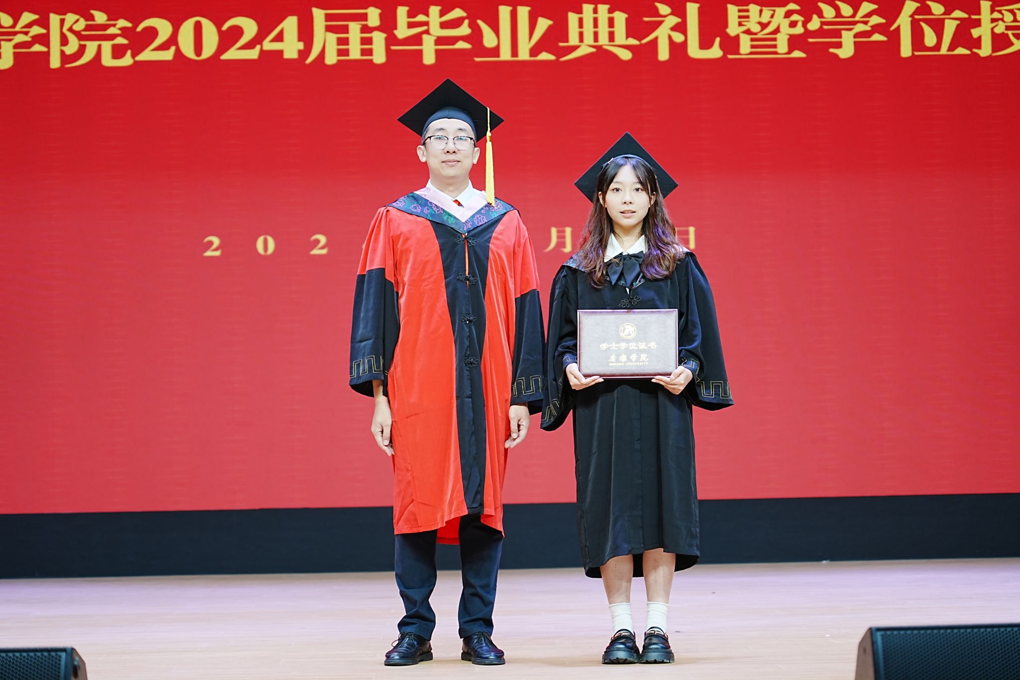 Beat365唯一官方网站党总支书记芦伟宣读了《关于授予2024届本科毕业生学士学位的决定》,并对顺利获得学位的同学表示热烈的祝贺。