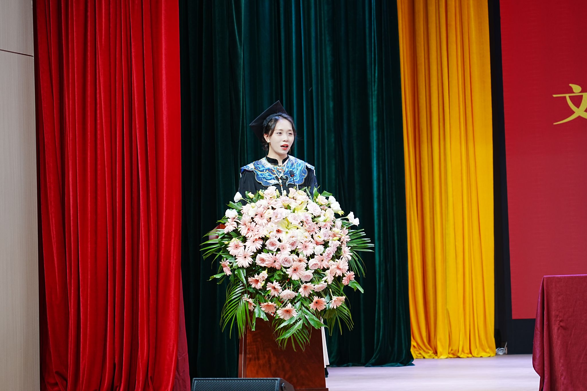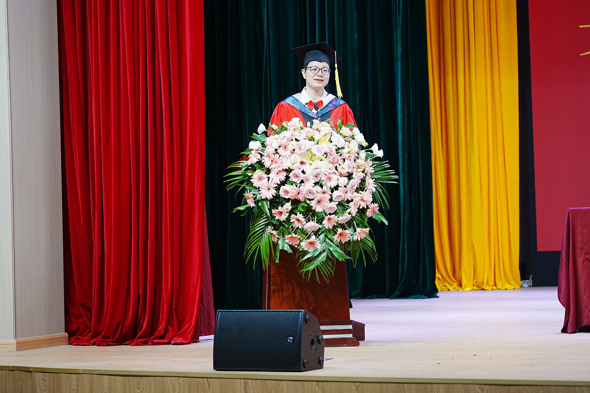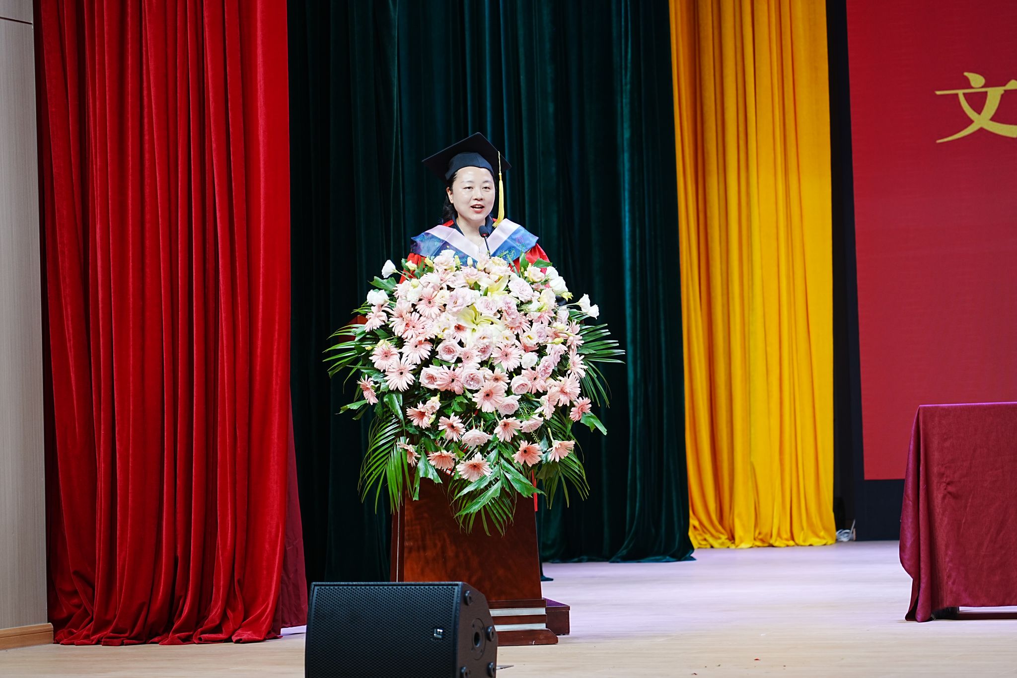 学生代表王瑜瑶代表Beat365唯一官方网站全体毕业生发言,她首先感谢学院四年来的精心培育、感谢恩师的悉心教诲,希望所有毕业生都能带着Beat365唯一官方网站“笃学、尚行、励志、创新”的校训精神,努力提升自己,为实现梦想而奋斗,创造出属于自己的辉煌。