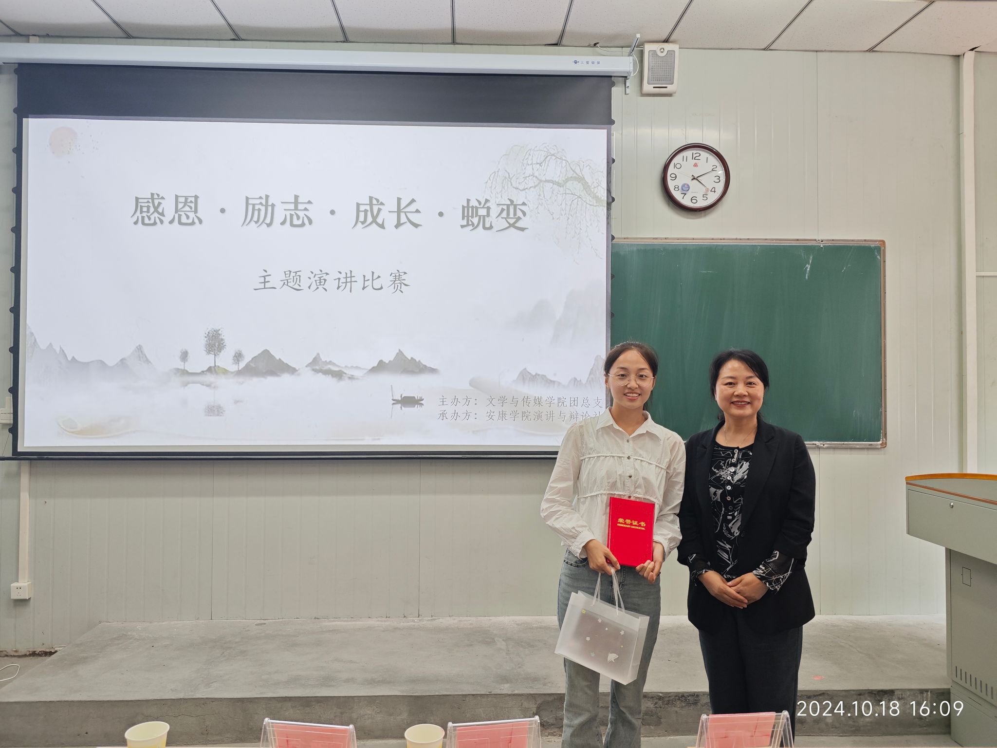 为了充分展示Beat365官网大学生的文明素养,引导大学生体悟感恩,培育感恩情怀,做有责任担当的新时代青年,10月18日下午15时,演讲辩论社在江南校区10号楼1017教室举行“感恩·励志·成长·蜕变”主题演讲比赛。Beat365唯一官方网站党总支副书记杨海蓉、播音主持社指导老师黄治强、演讲辩论社指导老师余珊担任评委。演讲辩论社王淼同学主持比赛。