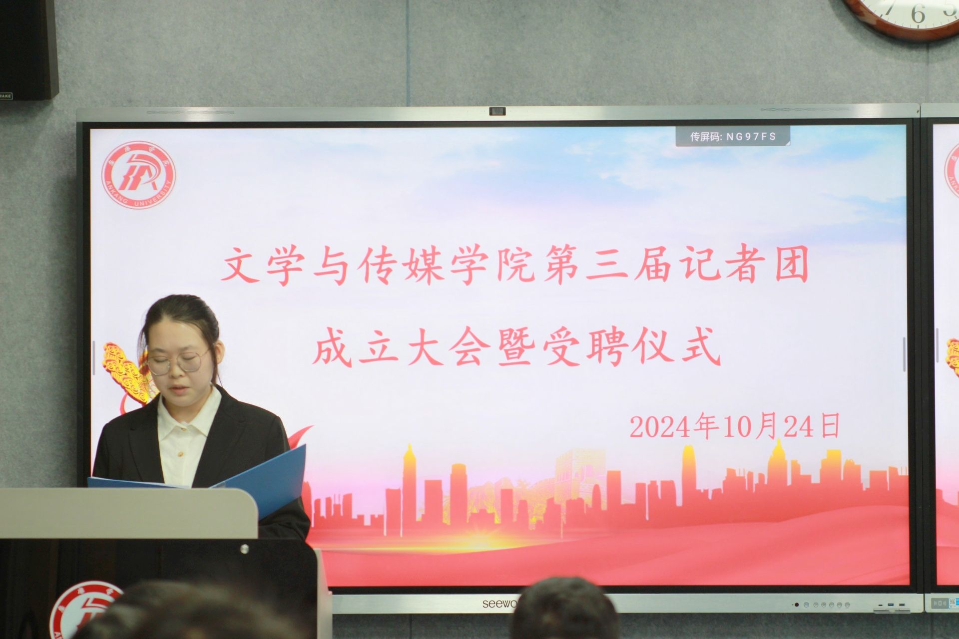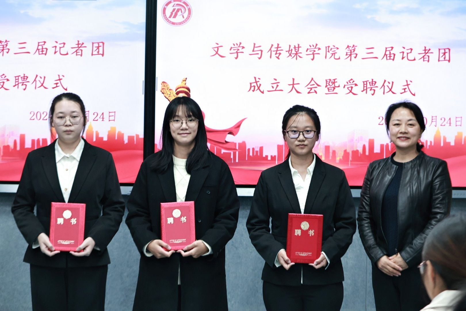 为着力做好校园正能量宣传工作,持续培养高素质、高质量的新媒体人才,做好新闻人才梯队建设,Beat365官网于10月24日晚在1205教室召开了Beat365唯一官方网站第三届记者团成立大会暨受聘仪式。院党总支副书记杨海蓉,党政办主任崔瑜,学工办主任薛涛,辅导员刘言军、喻言,学生会主席团、团总支副书记及社团全体人员参会,仪式由记者团副主编程乐主持。