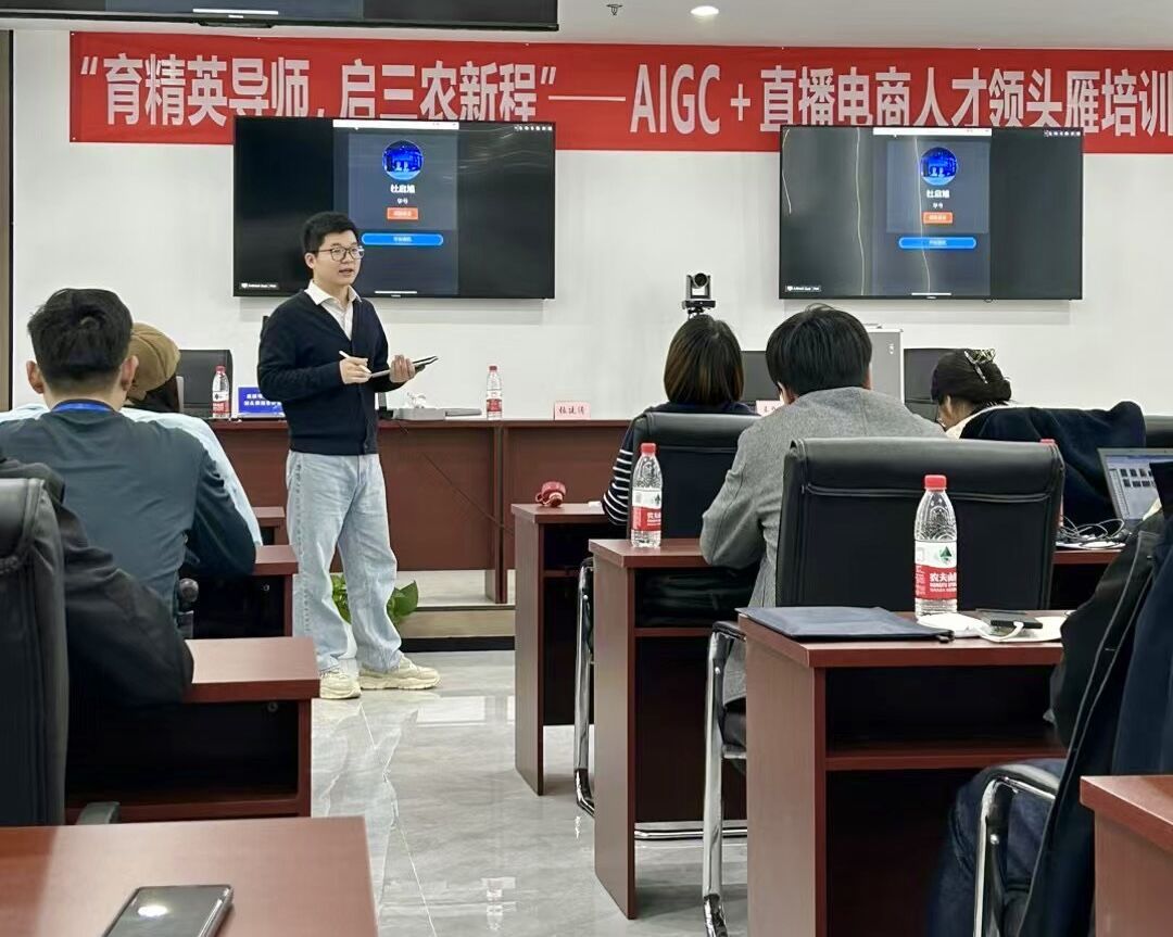 近日,Beat365官网网络与新媒体专业教师张建涛博士,作为特聘专家讲师,于11月7日至11月9日,在山东AIGC产业创新中心开展了“育精英导师,启三农新程”——AIGC+直播电商人才领头雁培训班系列授课活动。
