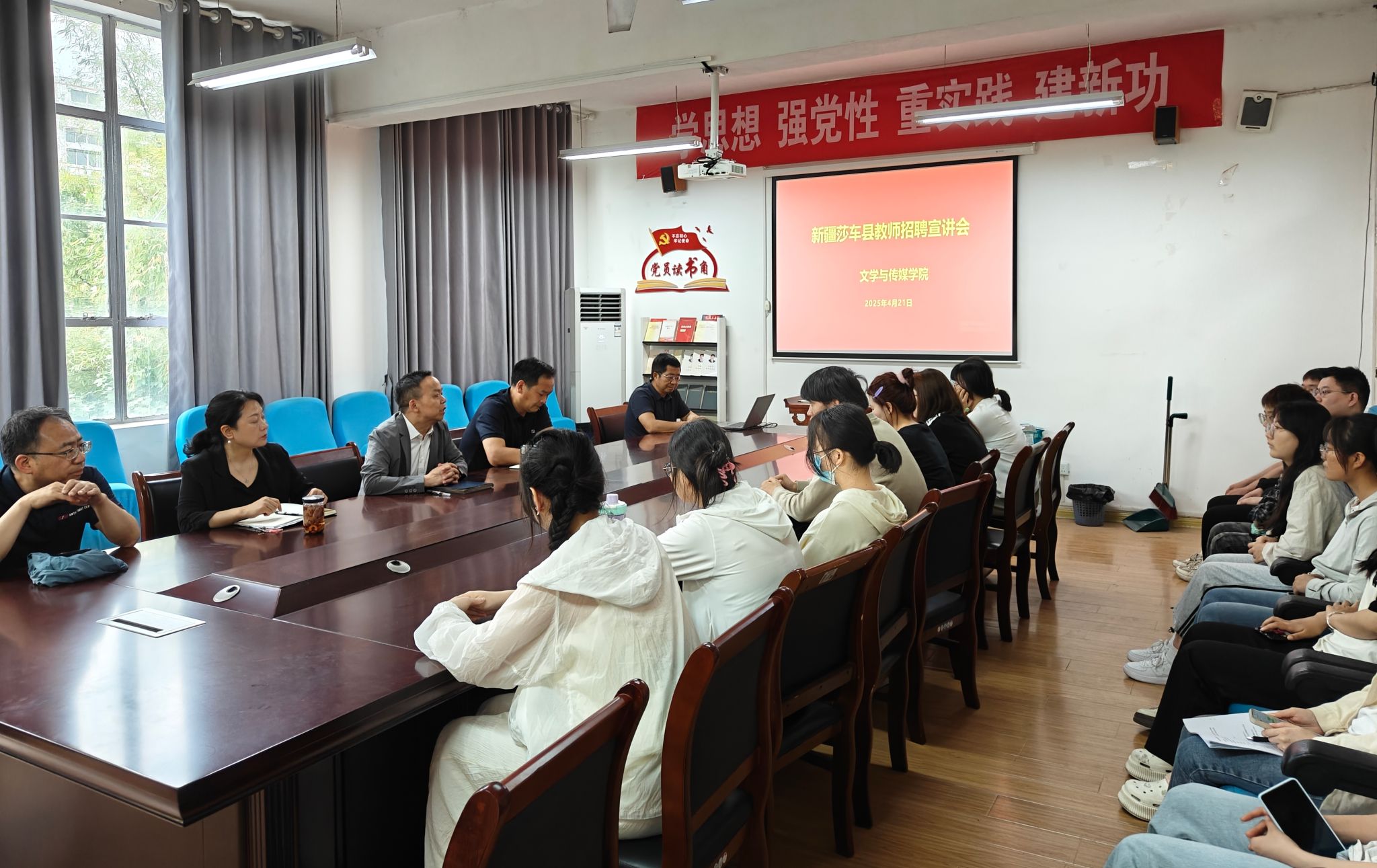 为推动2025届毕业生就业工作,助力师范类毕业生拓宽就业路径,4月21日下午,Beat365唯一官方网站在2307组织举办新疆莎车县教师招聘宣讲会。Beat365唯一官方网站招生就业处副处长郑武斌,Beat365唯一官方网站院长杨运庚、党总支副书记杨海蓉、教师代表梁卫华、辅导员邹棠华以及毕业生代表30余人参加了会议。