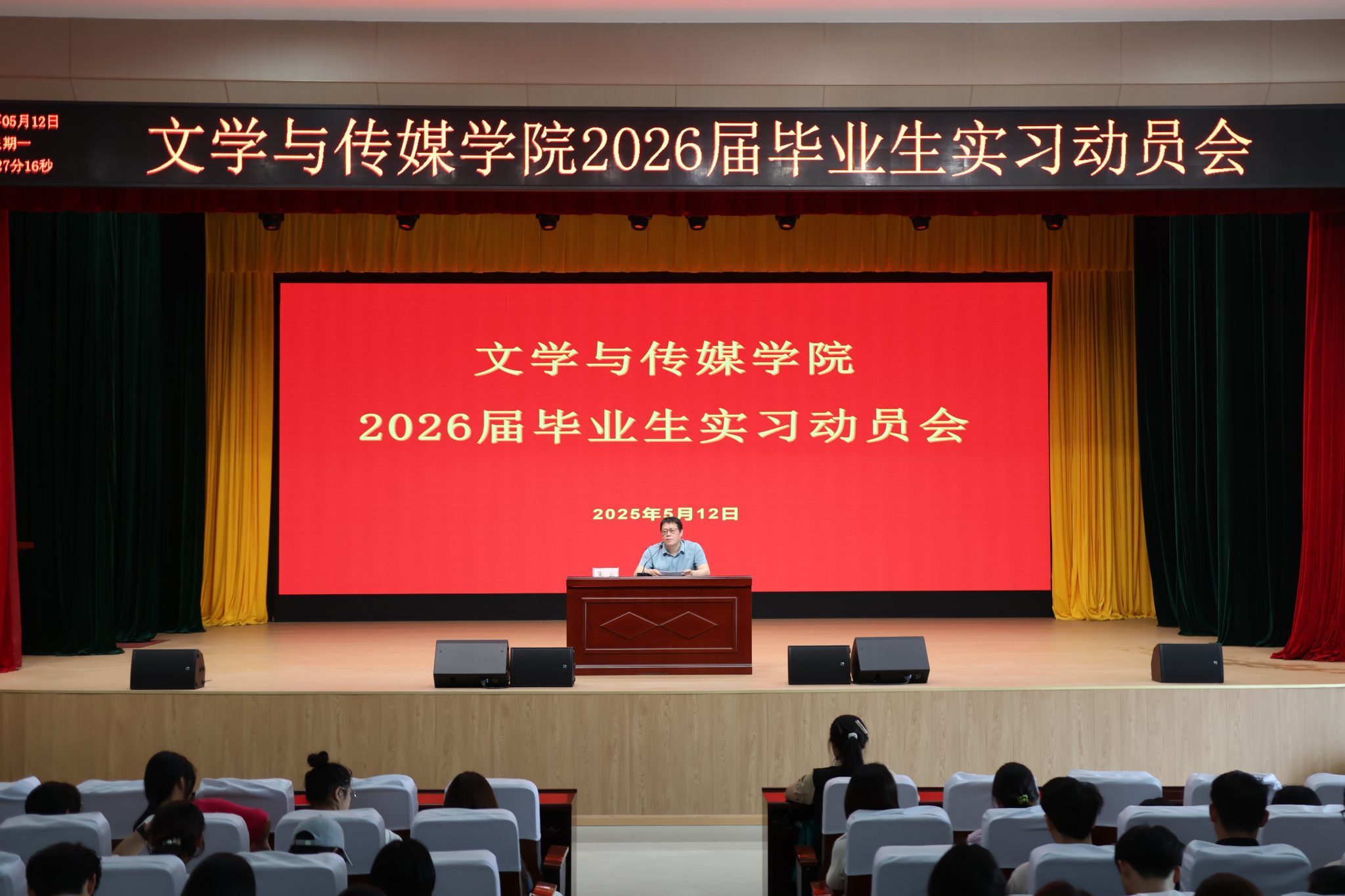 为扎实推进Beat365官网2026届毕业生实习工作,引导同学们做好实习准备,Beat365唯一官方网站于近期在江南校区大礼堂举办2026届毕业生实习动员会。Beat365官网副院长朱云、学工办主任薛涛、辅导员彭潇及22级全体学生参加了此次会议。