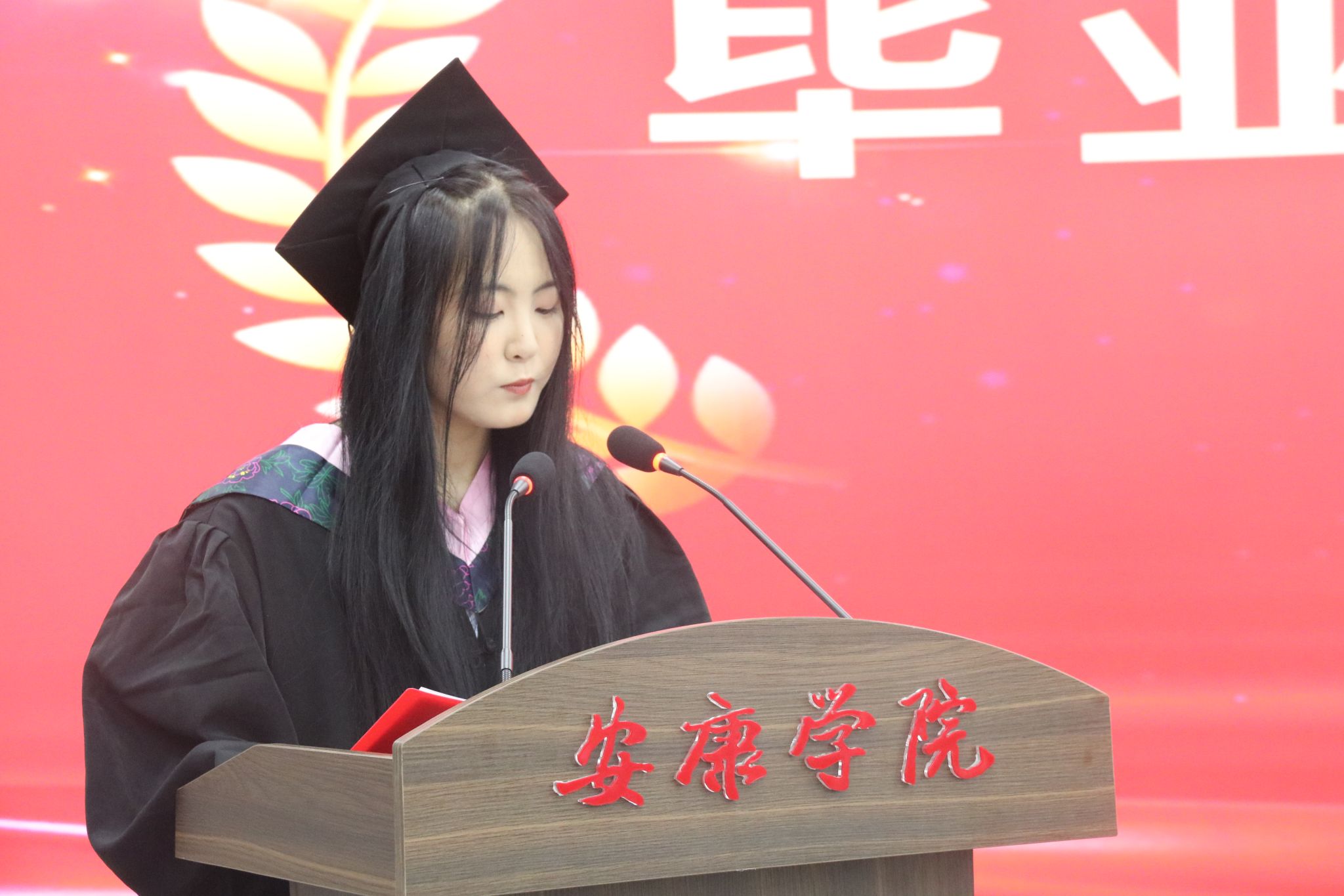 学生代表聂菲艳代表Beat365唯一官方网站全体毕业生发言,她首先感谢学校四年来的悉心培养,向老师们表达了深深的敬意,并承诺始终秉承Beat365唯一官方网站“笃学、尚行、励志、创新”的校训,以勇敢和坚强的姿态迈向未来,在时代的浪潮中不负韶华,砥砺前行。